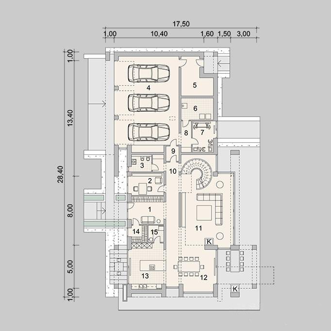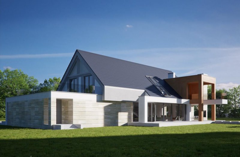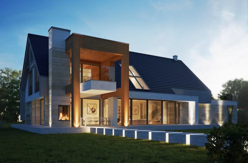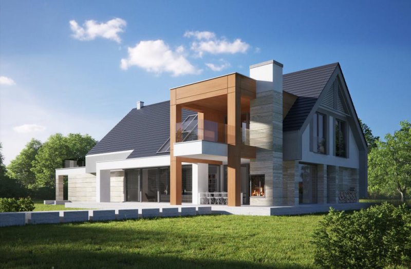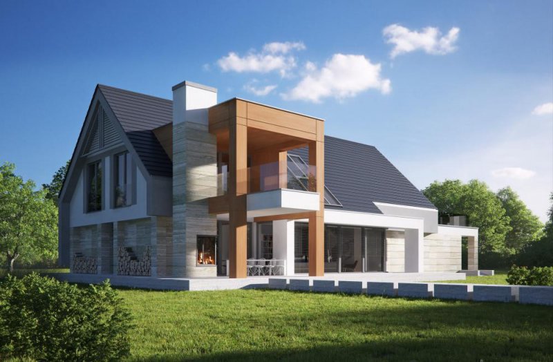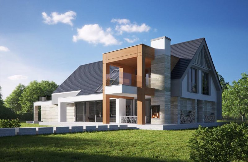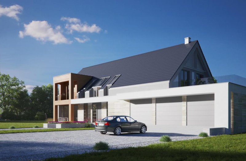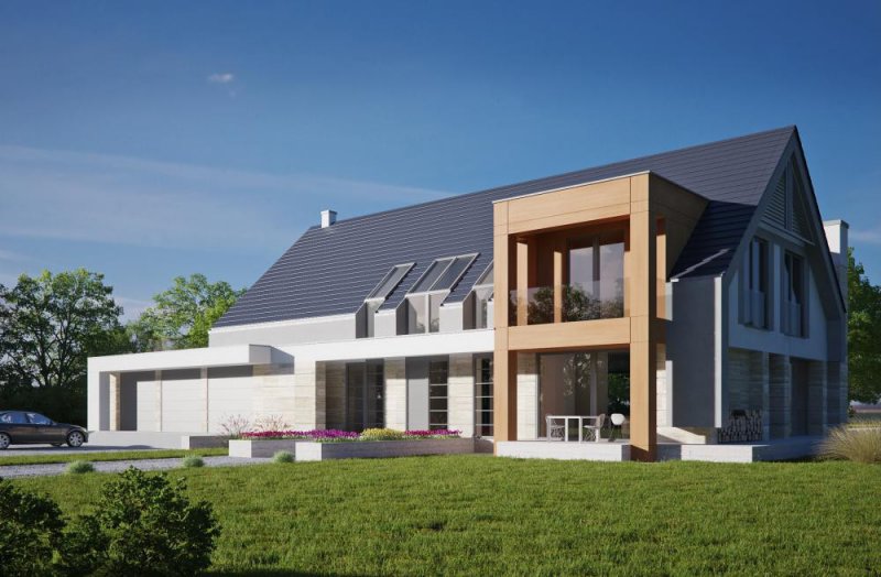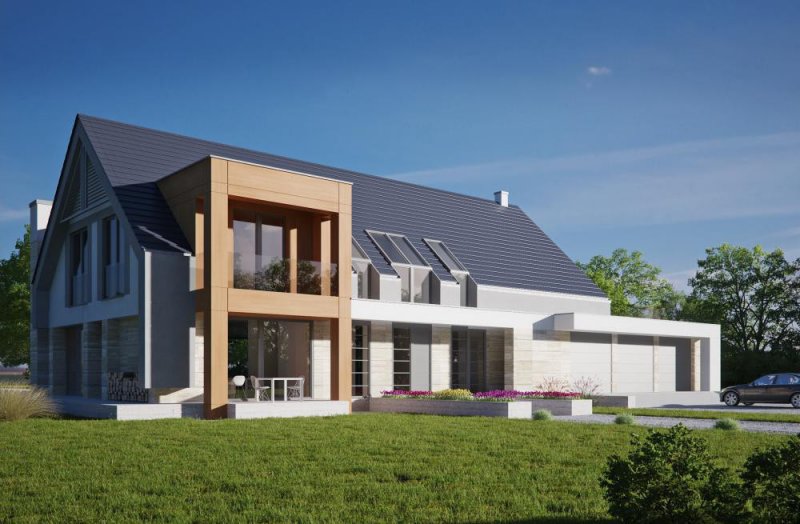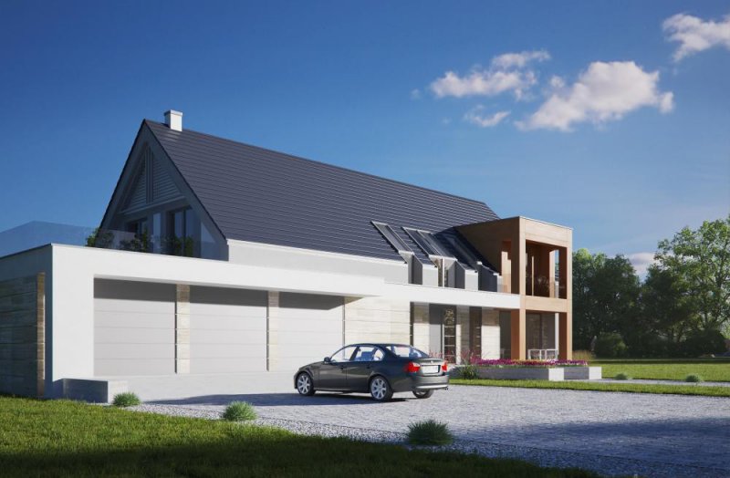 Nowoczesny, piętrowy dom jednorodzinny z wielostanowiskowym garażem. Idealny dom dla osób lubiących przestronne i funkcjonalne wnętrza w bryle o ciekawej konstrukcji.