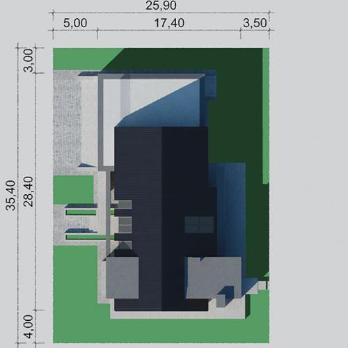 - Min. wymiary działki 35.40x25.90 m