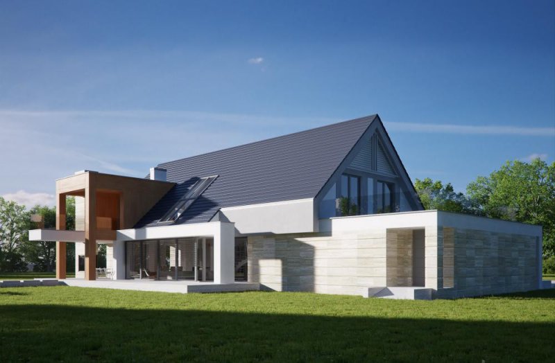 Elewacje: tynk silikonowy kolor: biały, szary, panele hpl, kamień trawertyn