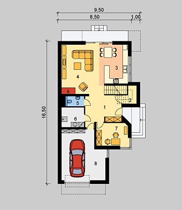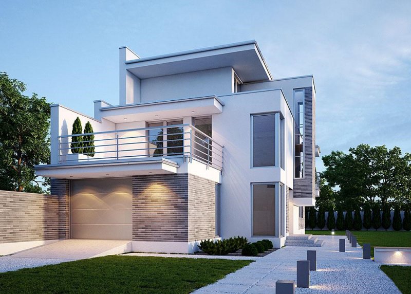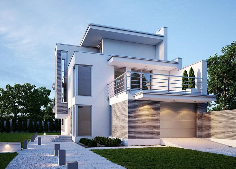 Dom jednorodzinny, piętrowy z jednostanowiskowym garażem.