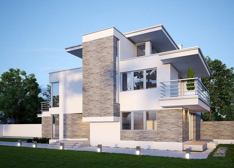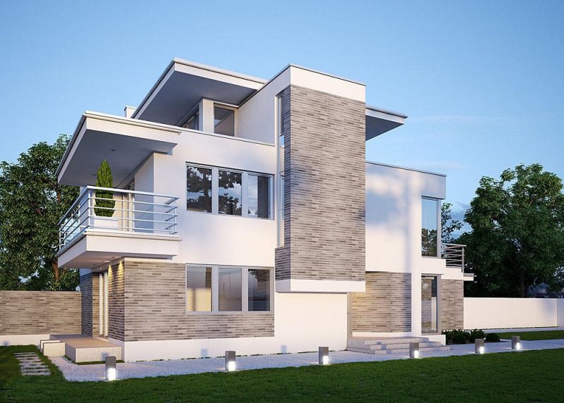 - Elewacje: wykończone tynkiem silikonowym, cokoły wykończone płytkami klinkierowymi