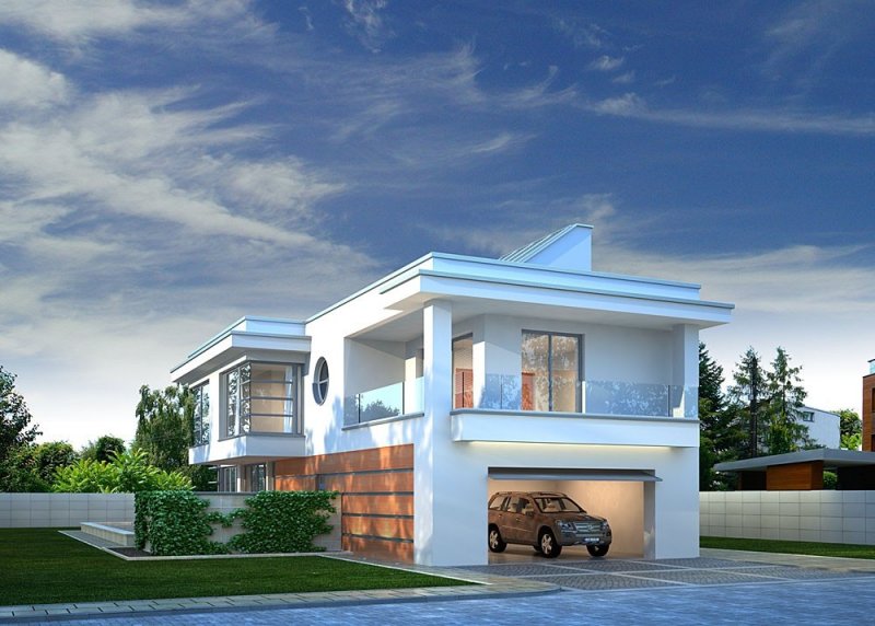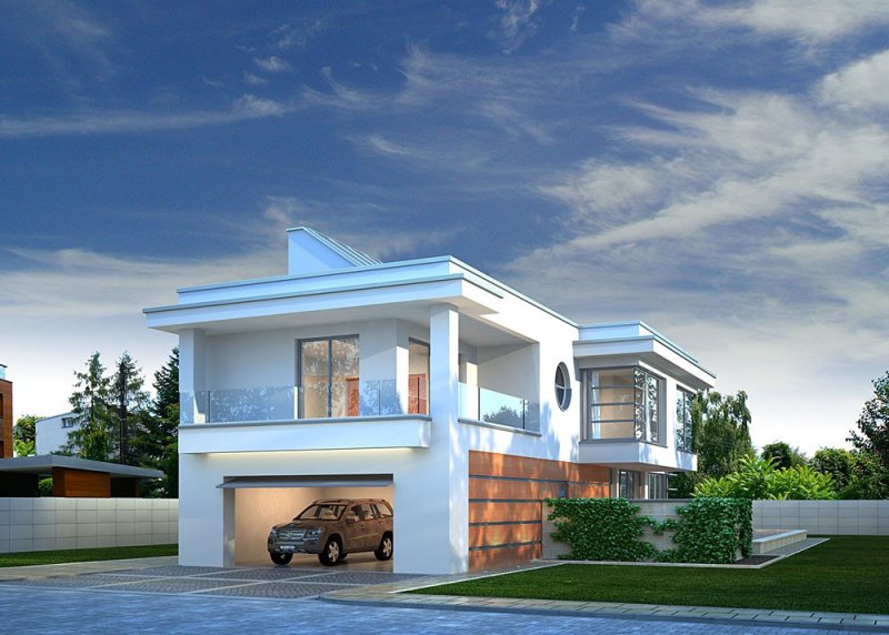 Dom jednorodzinny, piętrowy z dwustanowiskowym garażem.