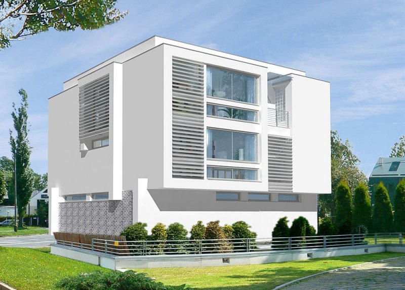Strop żelbetowy; Ściany wewnętrzne z pustaków Porotherm gr. 25 i 11.5 cm; Ściany zewnętrzne z pustaków Porotherm gr. 30 cm i wełny mineralnej gr. 20 cm firmy Rockwool; Ściany fundamentowe betonowe gr. 30 cm ocieplone styropianem ekstrudowanym; Ławy fundamentowe żelbetowe; Konstrukcja dachu stropodach; Pokrycie dachu żwir; Elewacje wykończone tynkiem mineralnym, a w obrębie parteru wykończone płytkami klinkierowymi; Okna i drzwi balkonowe aluminiowe; Sposób ogrzewania kocioł na gaz; Wentylacja mechaniczna z rekuperacją;