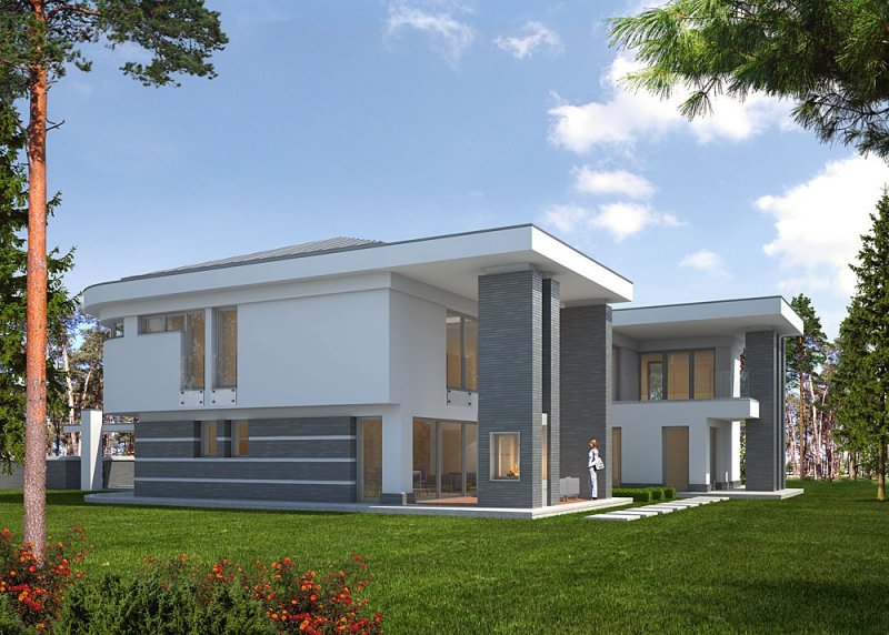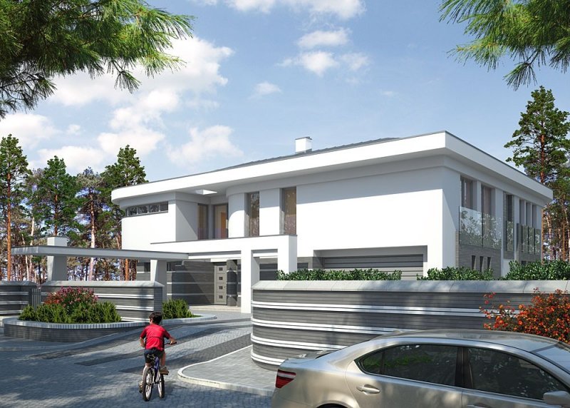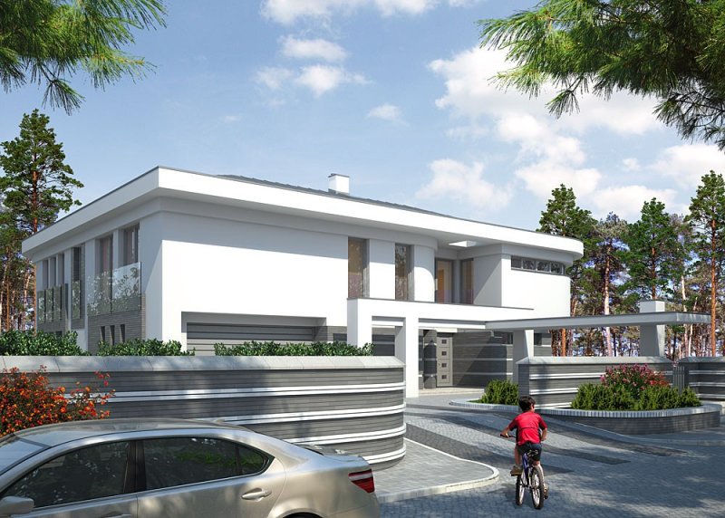 Dom jednorodzinny, piętrowy. Pompa ciepła oraz wentylacja mechaniczna zostały zaprojektowane przez firmę Arcon.