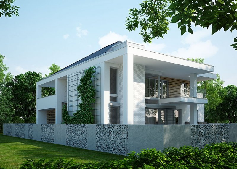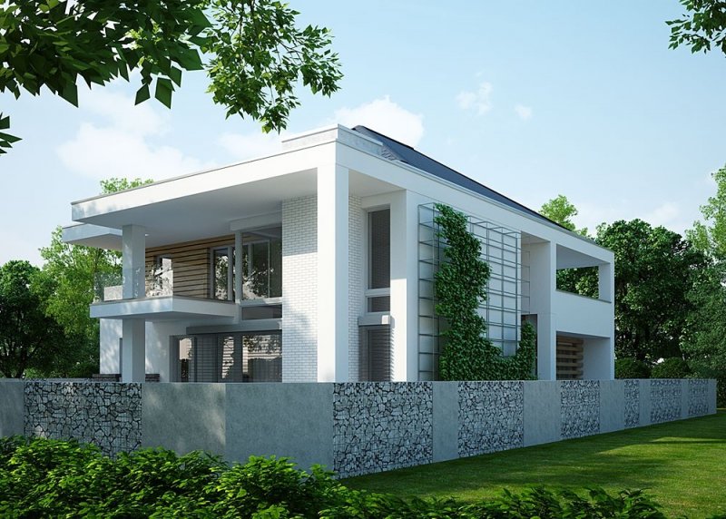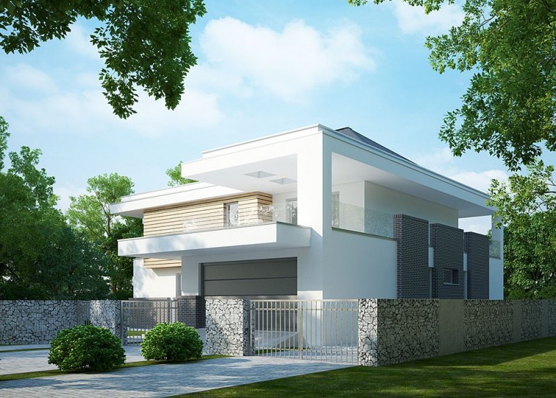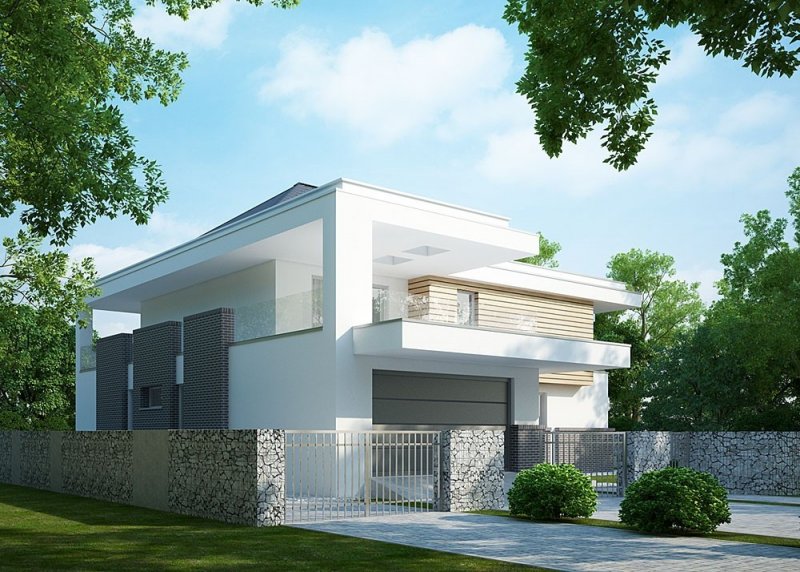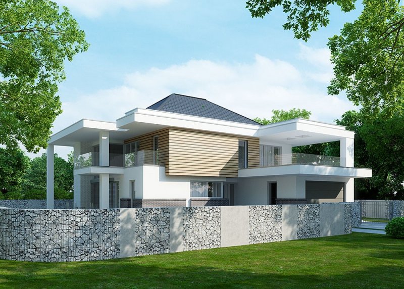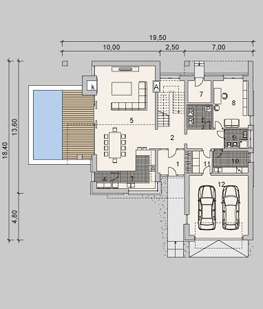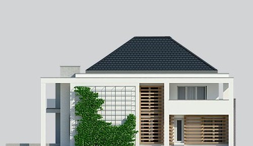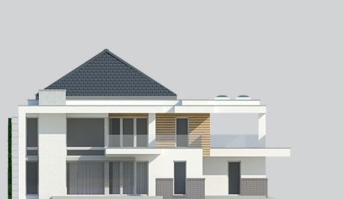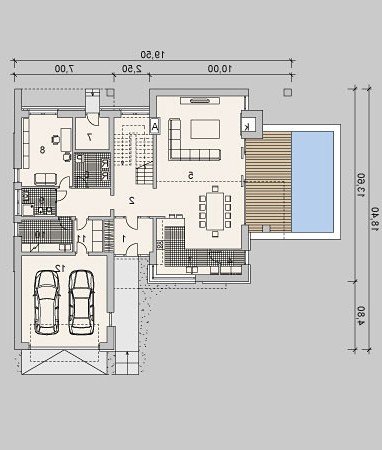 Projekt nowoczesnego domu jednopiętrowego z basenem.