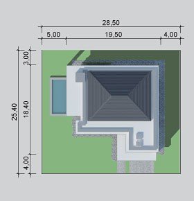- Min. wymiary działki 28.50x25.40 m