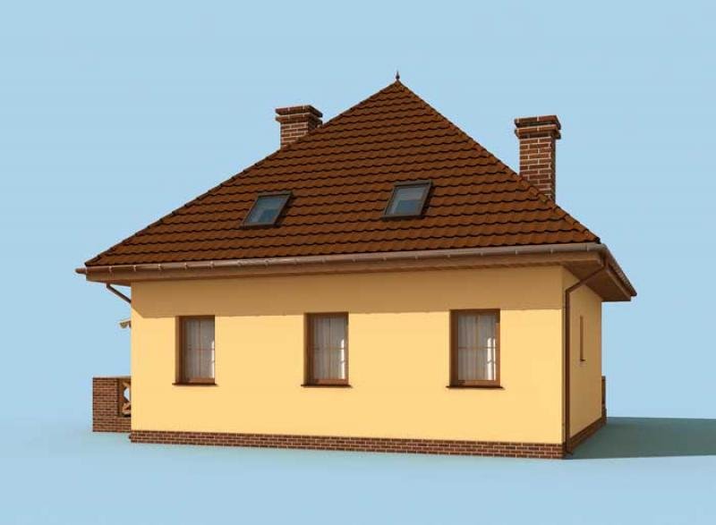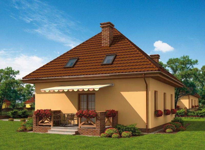 Madera- projekt domu z wejściem od południaTen projekt zwraca uwagę niezwykłym zachowaniem proporcji oraz symetrii, które przełamuje spadzisty dach (43 stopnie nachylenia), tym sposobem całość jawi się jako połączenie prostoty z elegancją. Wejście usytuowane jest od południa. Ganek znajdujący się w niedużej wnęce zachęca do wejścia do środka. Prowadzi on do wiatrołapu, po wyjściu z którego po lewej znajduje się komunikacja, naprzeciw niej natomiast usytuowany jest przestronny, ale i przytulny salon. Można z niego wyjść na sporych rozmiarów taras, który stwarza wiele okazji do rodzinnych spotkań oraz całorocznego uroczystego świętowania na świeżym powietrzu. Kuchnia znajduje się tuż za salonem i jest połączona z jadalnią. Posiada ona połączenie z kotłownią, a ta znowu, sąsiaduje przez ścianę z łazienką wyposażoną w prysznic, która za ścianą ma komunikację.Na pierwszym piętrze znajduje się większa łazienka z wanną. Poza nią, znajdziemy tam jedną dużą sypialnię z dwoma łóżkami oraz dwa nieco mniejsze pokoje z łóżkami. Ten projekt, to propozycja dla rodzin, które cenią sobie prostotę i elegancję, klarowny podział pomieszczeń w budynku znakomicie harmonizuje przestrzeń domową. Projekt składa się z części architektonicznej, konstrukcyjnej, wewnętrznych instalacji wod.-kan, c. o. i elektrycznej. W projekcie załączone są podstawowe zestawienie stali, drewna i stolarki okienno-drzwiowej. Do projektu dołączamy bezpłatną zgodę na wprowadzenie zmian, oświadczenie projektantów o wykonaniu projektu zgodnie z obowiązującymi normami i przepisami oraz kserokopie uprawnień projektantów wraz z aktualnym wpisem do izby. W przypadku zamówienia projektu w technologii lekkiej, drewnianej konstrukcji szkieletowej, powierzchnia użytkowa budynku jest o około 7% większa.