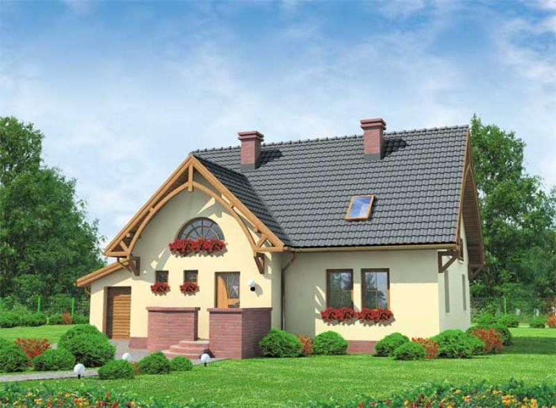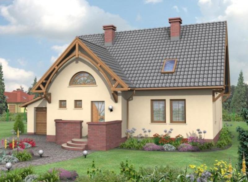 MILANO- dom jednorodzinny z garażem To jeden z robiących najlepsze wrażenie na Inwestorach projektów w naszej ofercie. Zwraca na siebie uwagę innowacyjnymi wykończeniami i wstawkami, a także półokrągłym oknem. Samo wejście, gustowny ganek, z ładnym murkiem, świetnie komponujący się z cokołem, przykuwa uwagę swoją wyjątkową elegancją i urodą. Półokrągłe schody ganku korespondują ze znajdującym się nad gankiem oknem w podobnym kształcie. Wiatrołap prowadzi do komunikacji, z której w lewo można przejść do kotłowni oraz pomieszczenia gospodarczego. Natomiast od komunikacji na prawo znajduje się mała łazienka, dobrze doświetlony pokój z trzema oknami oraz salon, pokój dzienny, częściowo połączony z kuchnią i jadalnią, to właśnie z nich można przejść na taras, który z pewnością będzie miejscem niejednej uczty oraz rodzinnej uroczystości.Na piętrze znajduje się większa łazienka z wanną, do której przylega pralnia. Poza nimi znajdziemy tam sypialnię z garderobą oraz dwa pokoje, z rozsądnie zaadaptowanymi na szafy wnękami w ścianach. Zarówno garaż, jak i budynek prezentuje się gustownie i okazale, tworząc harmonijną bryłę na miarę Waszych marzeń.