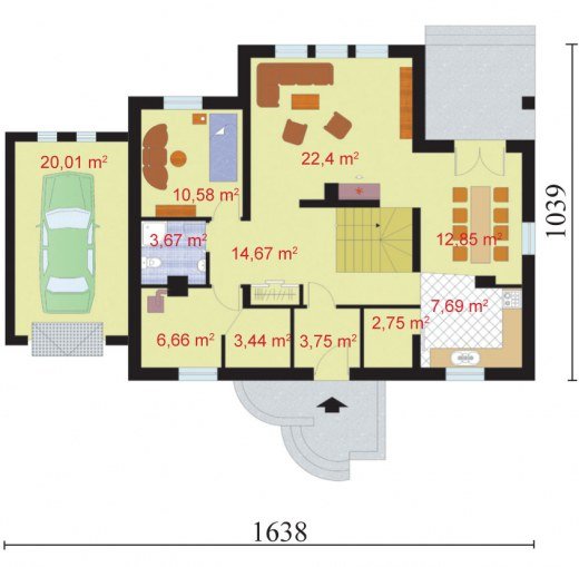 "Miramas" To projekt wyjątkowy – prosty, a zarazem niezwykle urzekający. Drzwi główne zostały umieszczone w centralnej części elewacji frontowej – nad nimi wznosi się niewielki daszek stanowiący niewielki pseudoryzalit stworzony po to, by dodać uroku wejściu do domu. Schody wejściowe zostały otoczone uroczymi murkami. Elewacja tylna natomiast została tak pomyślana, by obszerny ryzalit, tworzący wewnątrz dodatkową przestrzeń dla pokoju dziennego, osłaniał przylegający do ściany północnej i wschodniej, uroczy taras. Z lewej strony domu przewidziano jednostanowiskowy garaż. Budynek nie jest podpiwniczony, ale posiada możliwość adaptacji kotłowni na węgiel. W tym projekcie przewidziano kilka mniejszych pomieszczeń, które spełniają bardzo ważne funkcje i pomogą utrzymać porządek w domu. Wchodząc do środka, przechodzimy przez wiatrołap, by dojść do komunikacji. Na lewo mamy wejście do kotłowni połączonej z pomieszczeniem technicznym. Do ściany zachodniej domu przylega także niewielka łazienka, w której znajdzie się miejsce na kabinę prysznicową. Obok niej mamy pomieszczenie, w którym możemy urządzić na przykład pokój telewizyjny czy bibliotekę. Do ściany północnej domu przylega pokój dzienny, który zachwyca trzema obszernymi oknami. Na prawo od wiatrołapu znajduje się kuchnia posiadająca przejście do spiżarni. Niewątpliwie czarującym miejscem domu będzie jadalnia – po pierwsze dlatego, że jej okna wychodzą na wschód, a po drugie – można z niej wyjść na taras. Taki układ pomieszczeń będzie bardzo wygodnym rozwiązaniem, jeżeli zdecydujemy się na przyjęcie na świeżym powietrzu. Schody na poddasze zostały umieszczone w centralnej części domu. Na piętrze mamy obszerną łazienkę wyposażoną w dużą wannę, do której światło wpada jedynie przez okno połaciowe, co zwiększa możliwości zagospodarowania przestrzeni w tym pomieszczeniu. Obok łazienki znajduje się pomieszczenie rekreacyjne, sąsiadujące z gabinetem. Do ściany wschodniej przylega także sypialnia posiadająca dostęp do odrębnej łazienki z prysznicem. Oprócz tych pomieszczeń, mamy tutaj jeszcze dwa pokoje – jeden, umieszczony w ryzalicie z wyjściem na balkon, drugi – przylegający do zachodniej ściany domu. Projekt Miramas jest niezwykle interesujący, posiada wiele praktycznych, nietuzinkowych rozwiązań. Spełni oczekiwania najbardziej wymagających osób, poszukujących jednocześnie ekonomicznych rozwiązań. Przygotowaliśmy dla tego projektu kosztorys montażu systemu rekuperacji. Projekt składa się z części architektonicznej, konstrukcyjnej, wewnętrznych instalacji wod.-kan, c. o. i elektrycznej. W projekcie załączone są podstawowe zestawienie stali, drewna i stolarki okienno-drzwiowej. Do projektu dołączamy bezpłatną zgodę na wprowadzenie zmian, oświadczenie projektantów o wykonaniu projektu zgodnie z obowiązującymi normami i przepisami oraz kserokopie uprawnień projektantów wraz z aktualnym wpisem do izby. W przypadku zamówienia projektu w technologii lekkiej, drewnianej konstrukcji szkieletowej, powierzchnia użytkowa budynku jest o około 7% większa. powierzchnia ścian w projekcie Miramas: - zewnętrzne - 246,43 m2 - wewnętrzne: parter - 67,55 *2 = 135,1 m2 poddasze - 113,44 *2 = 226,9 m2 Powierzchnia podłóg: -parter 115,02 m2 -poddasze 135 m2
