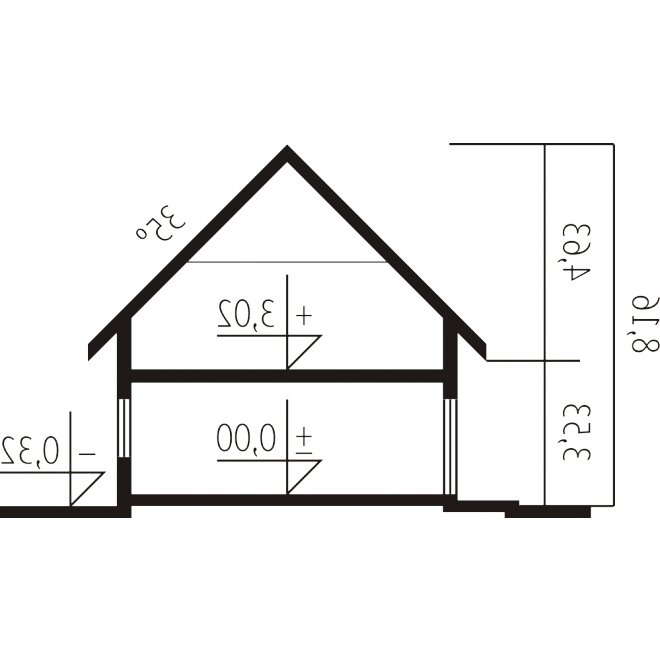 - Kąt nachylenia dachu 35.00°