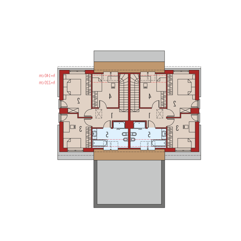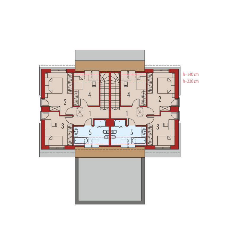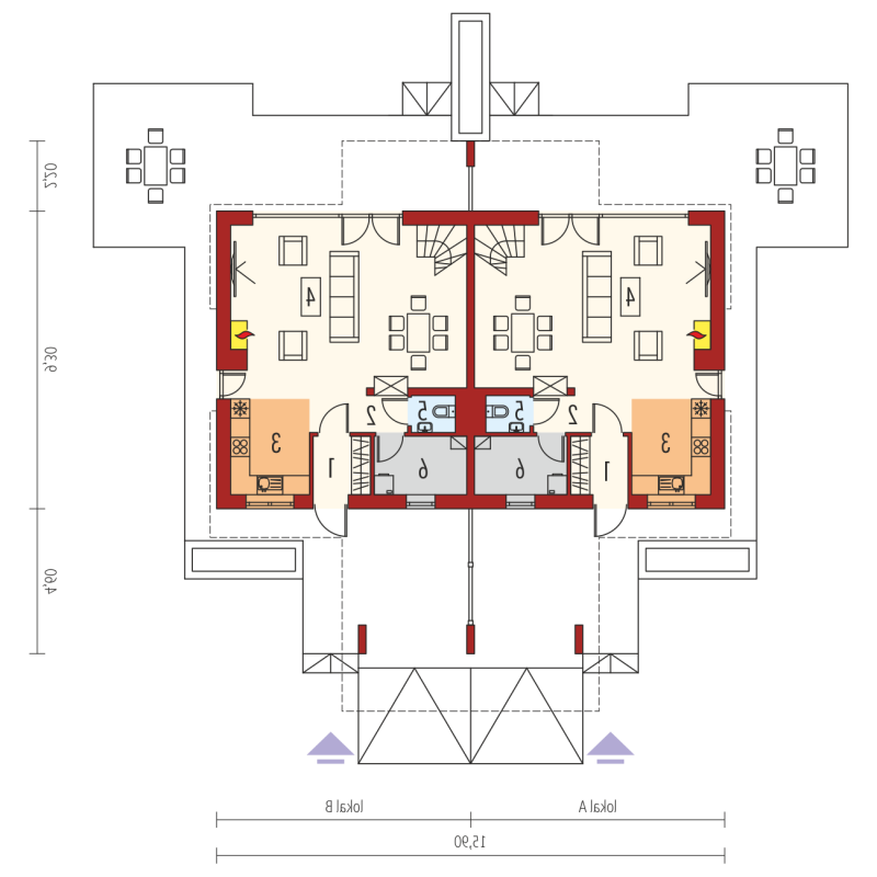 Przeznaczenie: dwa jednakowe lokale, każdy dla 3-4-osobowej rodziny