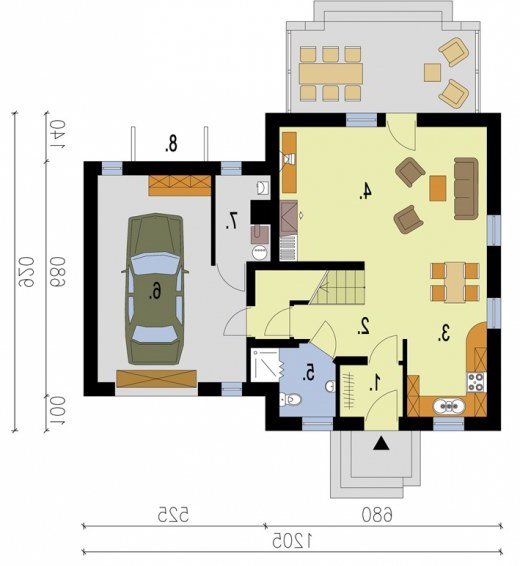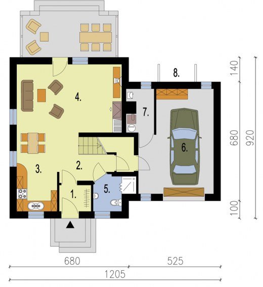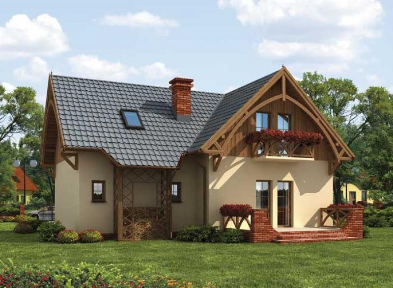 "Palanka" To wytworny dom jednorodzinny z poddaszem, który zachwyca poprzez kontrastujące, a zarazem uzupełniające się elementy drewniane i ceglane. Te drugie zastosowane zostały od frontu jako niewielki murek prowadzący do wejścia, oraz na tyłach budynku przy wykończeniu tarasu. Dużą większą rolę odgrywa tutaj drewno, które subtelnie okala górną połowę elewacji, podkreślając poziomy podział budynku na parter i poddasze. Efekt jest tym ciekawszy, i dodatkowymi elementami drewnianymi, uzupełniającymi całość, są drzwi wejściowe, garażowe oraz składzik na drewno usytuowany na tyłach domu (dostępny również w projekcie Saragossa!). Wnętrze Palanki jest równie efektowne! Przestronny pokój zajmujący większą część parteru pełni funkcję kuchni, jadalni i salonu, a pozostałe pomieszczenia sąsiadujące z nim to toaleta oraz pojemny garaż z kotłownią. Na poddaszu natomiast umieszczone zostały trzy przytulne sypialnie i atrakcyjna łazienka. Projekt składa się z części architektonicznej, konstrukcyjnej, wewnętrznych instalacji wod.-kan, c. o. i elektrycznej. W projekcie załączone są podstawowe zestawienie stali, drewna i stolarki okienno-drzwiowej. Do projektu dołączamy bezpłatną zgodę na wprowadzenie zmian, oświadczenie projektantów o wykonaniu projektu zgodnie z obowiązującymi normami i przepisami oraz kserokopie uprawnień projektantów wraz z aktualnym wpisem do izby. W przypadku zamówienia projektu w technologii lekkiej, drewnianej konstrukcji szkieletowej, powierzchnia użytkowa budynku jest o około 7% większa.