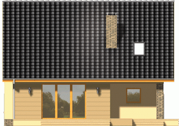 Budynek niepodpiwniczony, piętrowy z garażem. Na parterze obok pokoju dziennego i otwartej kuchni ze spiżarką znajduje się wc i pomieszczenie gospodarcze dostępne z garażu. Na poddaszu pod dachem stromym zaprojektowano 4 sypialnie, łazienkę i garderobę. Dokumentacja dostępna również w odbiciu lustrzanym.