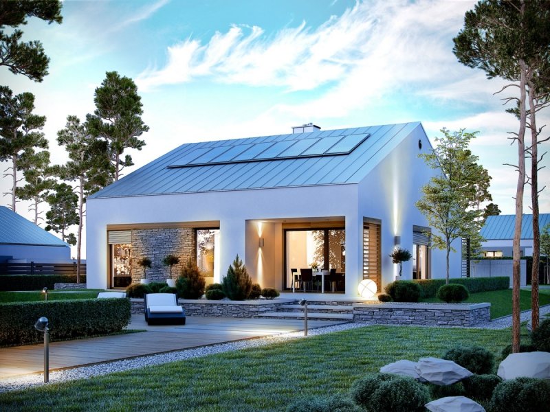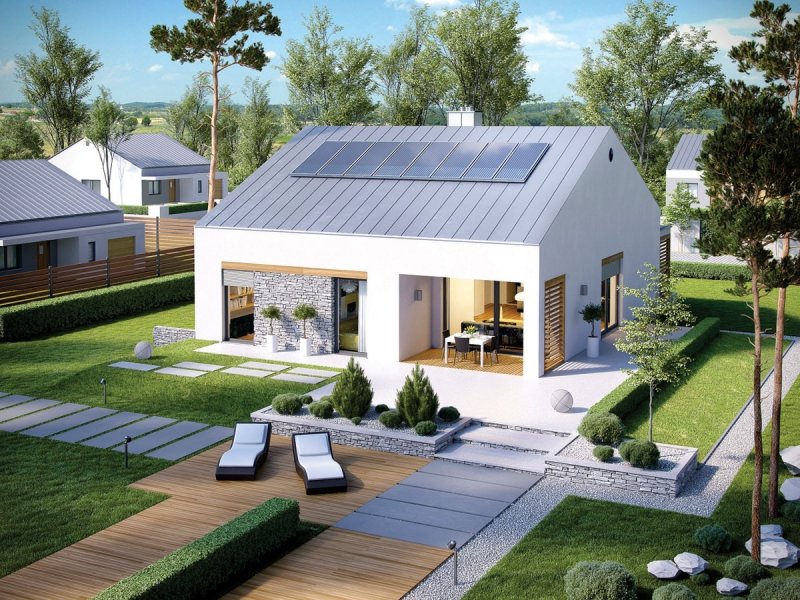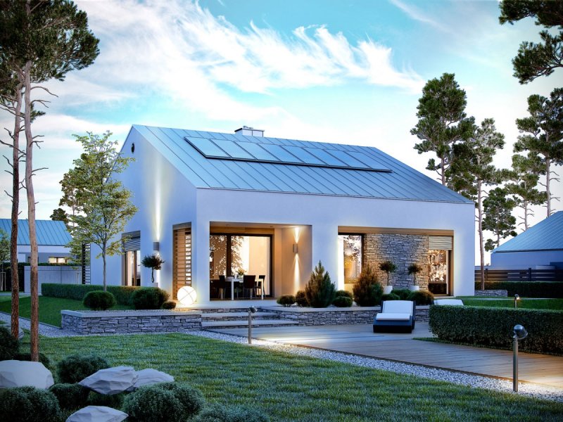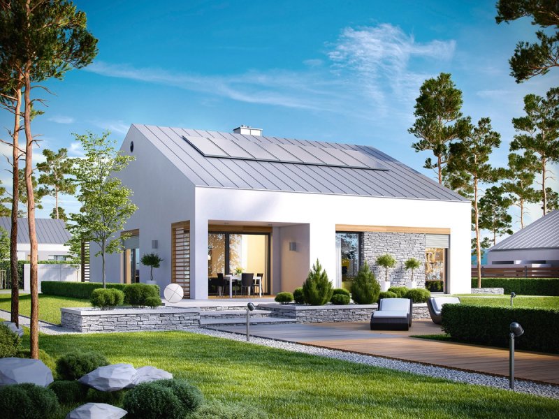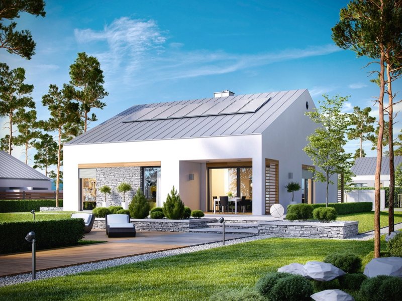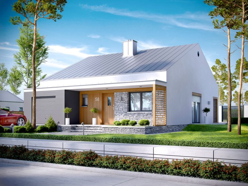 Ralf G1 to dom, który łączy współczesny szyk z funkcjonalnością – prosty i oszczędny a jednocześnie atrakcyjny i maksymalnie komfortowy w codziennym użytkowaniu. Modny charakter projektu efektownie podkreśla nowoczesna elewacja, na której subtelna biel i chłodna uroda kamienia, pięknie komponują się z naturalnym odcieniem drewna. Atutem domu jest przestronna strefa dzienna z dużymi przeszkleniami i pięknym widokiem na ogród.