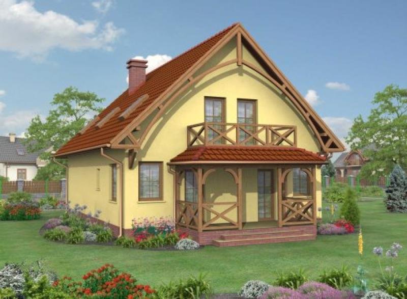 „Santa Susana” Dom ten ma dwojaki charakter. Z jednej strony klasyczny, gdyż brak garażu oraz drewniana weranda sprawiają, że domek utrzymany jest w klimacie XX-stego wieku. Z drugiej modernistyczny, ponieważ duża ilość okien, w tym łukowe na poddaszu, gwarantują, że wnętrze budynku będzie w pełni rozświetlone, a co za tym idzie- budynek jest w 100% nowoczesny! Popularne staje się łączenie pomieszczeń, dlatego Santa Susana przedstawia rozwiązanie 3 w 1- kuchnia, jadalnie i salon w jednym obszernym pokoju. Dzięki niemu możemy być stale w centrum życia towarzyskiego. Na tym samym piętrze znajdują się łazienka, gabinet oraz kotłownia. Na wyższym poziomie usytuowane są dwa pokoje, wygodna łazienka oraz sypialnia wyposażona w własną garderobę. Projekt składa się z części architektonicznej, konstrukcyjnej, wewnętrznych instalacji wod.-kan, c. o. i elektrycznej. W projekcie załączone są podstawowe zestawienie stali, drewna i stolarki okienno-drzwiowej. Do projektu dołączamy bezpłatną zgodę na wprowadzenie zmian, oświadczenie projektantów o wykonaniu projektu zgodnie z obowiązującymi normami i przepisami oraz kserokopie uprawnień projektantów wraz z aktualnym wpisem do izby. W przypadku zamówienia projektu w technologii lekkiej, drewnianej konstrukcji szkieletowej, powierzchnia użytkowa budynku jest o około 7% większa.