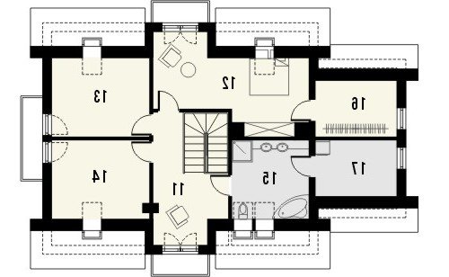 Projekt Szmaragd 3 to domjednorodzinny przekryty dachem dwuspadowym. Posiada jedno- lubdwustanowiskowy garaż. Na parterze zaprojektowano przestronny salonz wydzieloną jadalnią, kuchnię ze spiżarką, dodatkowy pokójoraz łazienkę, a także pomieszczenie gospodarcze, sąsiadujące zgarażem. Na piętrze zaprojektowano 3 komfortowej wielkościsypialnie, a także łazienkę z pralnią. Projekt zakupić można wwersji standard lub w odbiciu lustrzanym. Dom wyróżnia sięreprezentacyjnym charakterem oraz dużą powierzchnią użytkową.Ładnie zaakcentowano strefę wejściową, którą okalająprzypory. Taras znalazł się w podcieniu, dzięki czemu zyskałfunkcjonalne zadaszenie. Bryłę urozmaicają również balkony zozdobnymi balustradami.