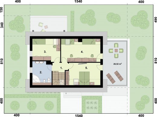 - Min. wymiary działki 23.40x17.00 m