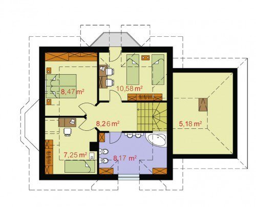 "Valencia" To dom z marzeń. Jego bajeczne kształty i eleganckie kamienne wykończenia przy wejściu, na tarasie oraz te biegnące w pionie po lewej ścianie budynku wprawią w zachwyt każdego! Rzeczą wyróżniającą go spośród innych są cokoły, które w pełni harmonii współgrają z resztą elewacji. Dla tych którzy lubią mieć wszystko pod kontrolą jedno pomieszczenie na parterze pełni funkcję gabinetu. To w nim bez problemu zostaną załatwione te sprawy na które nie było czasu w ciągu dnia. Na tym samym poziomie usytuowane zostały kuchnia z aneksem jadalnym, pokój dzienny, łazienka i kotłownia (która np. w Saragossie umieszczona jest na tyłach garażu, lecz nie w Valenci!). Dla miłośników przesiadywania na świeżym powietrzu niezależnie od pogody oferujemy taras, aby w pogodne dni promienie słoneczne delikatnie muskały policzki, oraz balkon za sprawą którego dowiemy się czym tak naprawdę jest ciepły letni deszcz. Na poddaszu znajdują się sypialnia, dwa pokoje, strych i duża łazienka. Projekt składa się z części architektonicznej, konstrukcyjnej, wewnętrznych instalacji wod.-kan, c. o. i elektrycznej. W projekcie załączone są podstawowe zestawienie stali, drewna i stolarki okienno-drzwiowej. Do projektu dołączamy bezpłatną zgodę na wprowadzenie zmian, oświadczenie projektantów o wykonaniu projektu zgodnie z obowiązującymi normami i przepisami oraz kserokopie uprawnień projektantów wraz z aktualnym wpisem do izby. W przypadku zamówienia projektu w technologii lekkiej, drewnianej konstrukcji szkieletowej, powierzchnia użytkowa budynku jest o około 7% większa.