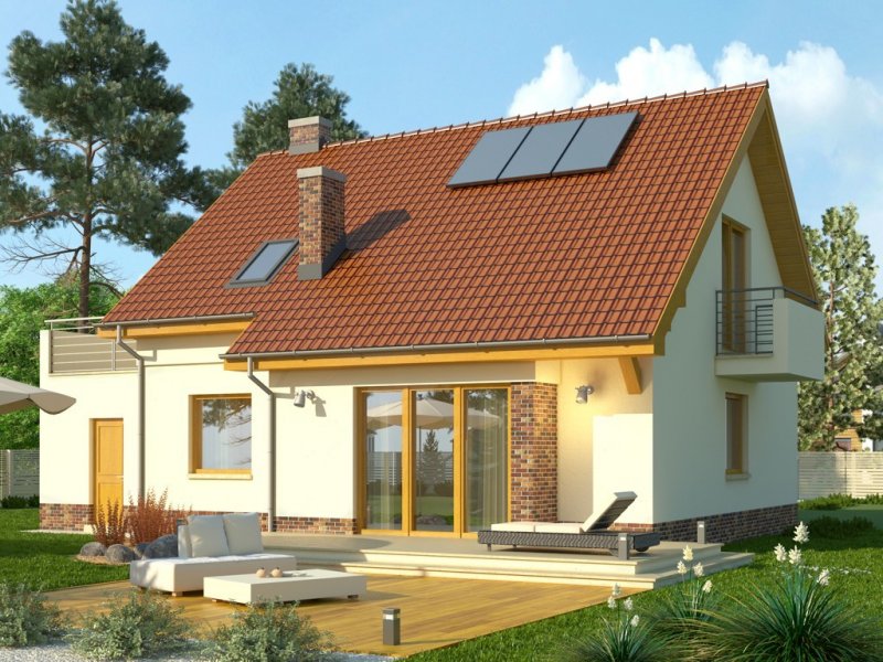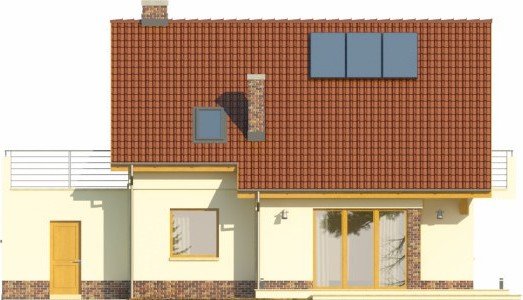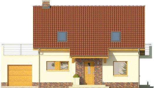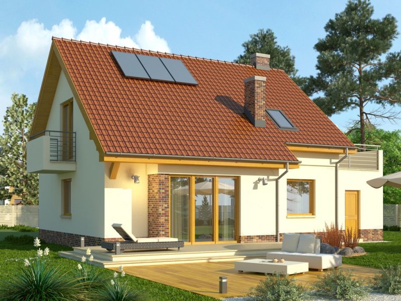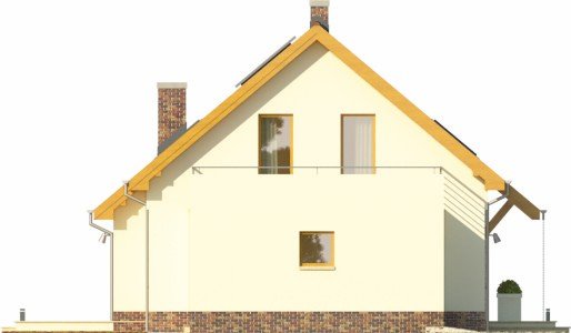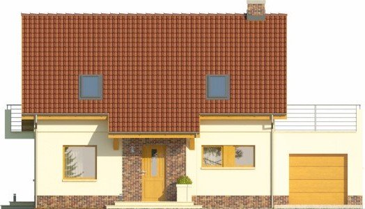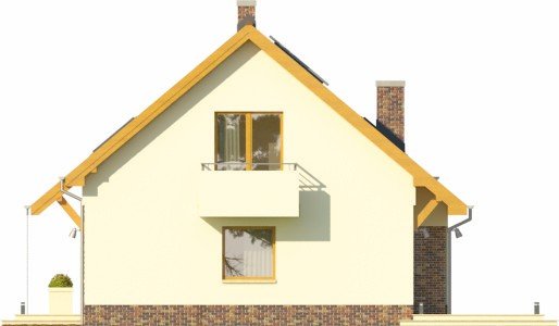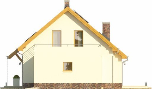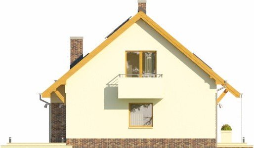 - Projekt wyróżnia się nowoczesnymi rozwiązaniami elewacyjnymi, ciekawie zaprojektowanym balkonem oraz przeszkleniem od strony ogrodu, otwierającym salon na zieleń. Budynek w podstawowym wariancie uwzględnia garaż, który jest przekryty płaskim dachem, co daje w poziomie piętra sporej wielkości powierzchnię do zagospodarowania pod taras.