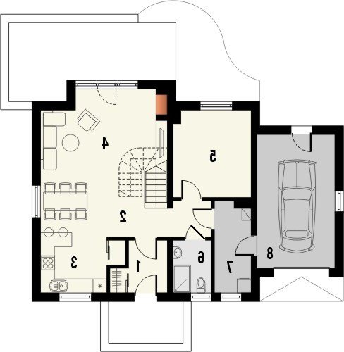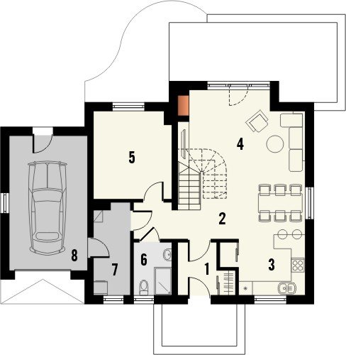 - Dom jednorodzinny WASABI to kompaktowy, funkcjonalnie zaprojektowany budynek przekryty dachem dwuspadowym. Komfortowej wielkości salon, otwarty na strefę kuchenną, dodatkowy pokój oraz opcjonalny garaż wypełniają powierzchnię parteru. Znajdziemy tu również pomieszczenie gospodarcze, spiżarnię oraz łazienkę. Na piętrze zaprojektowane są natomiast 3 pokoje sypialne, w tym jeden z wydzieloną garderobą, oraz drugą, większą łazienkę.