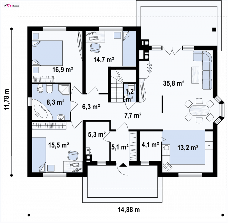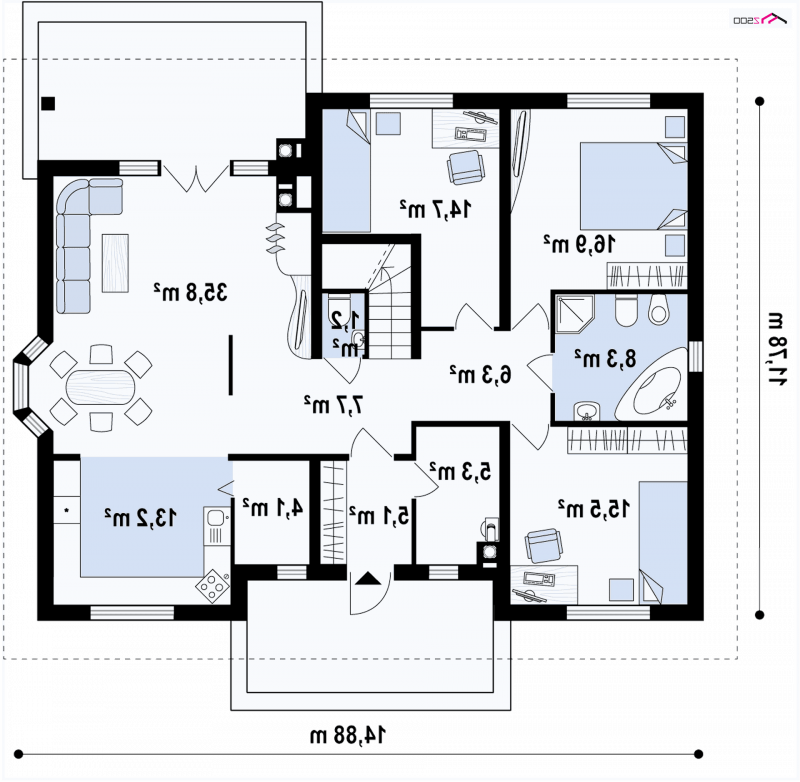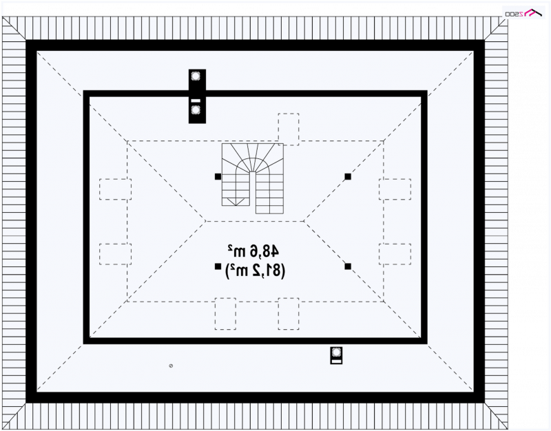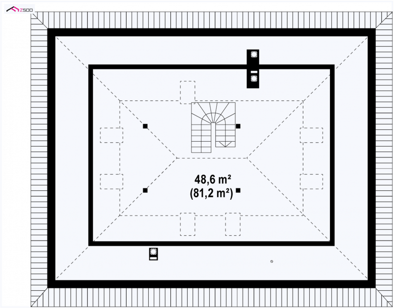 Wersja z poddaszem uzytkowym dzięki zastosowaniu stropu TERIVA. Otwarta przestrzeń poddasza do indywidualnej aranżacji wg potrzeb.