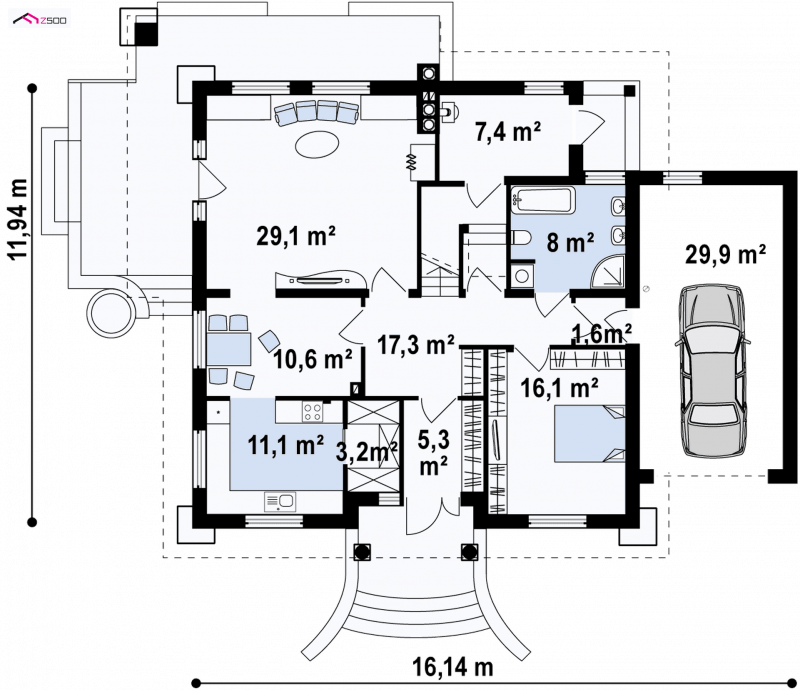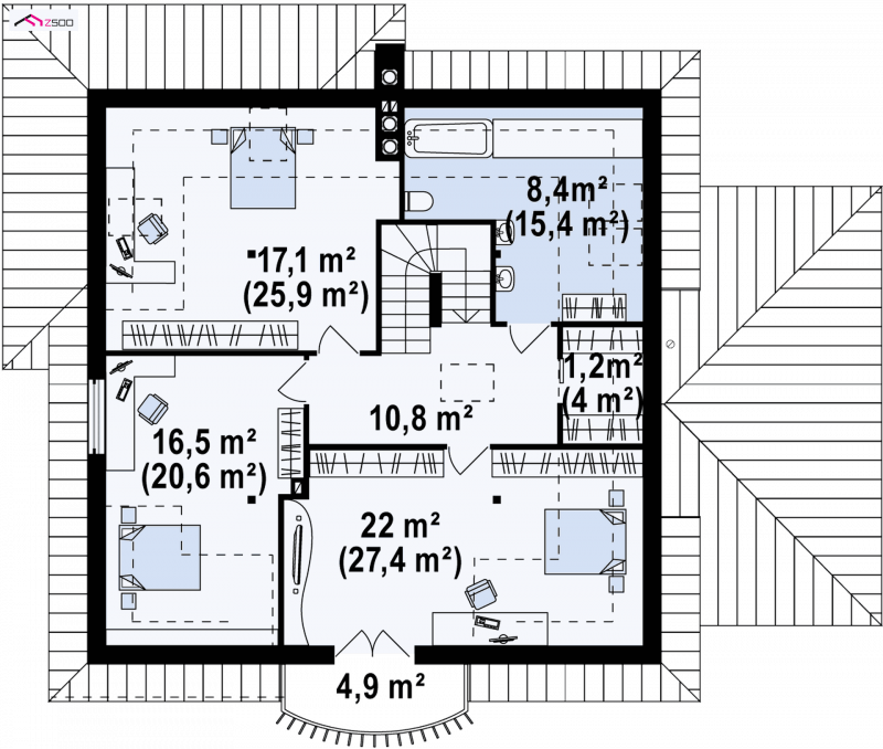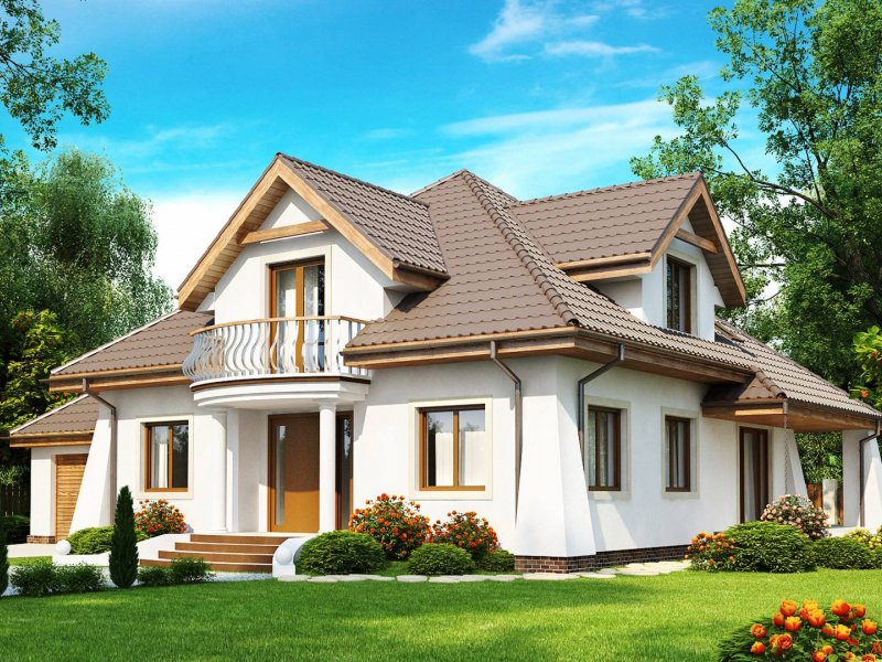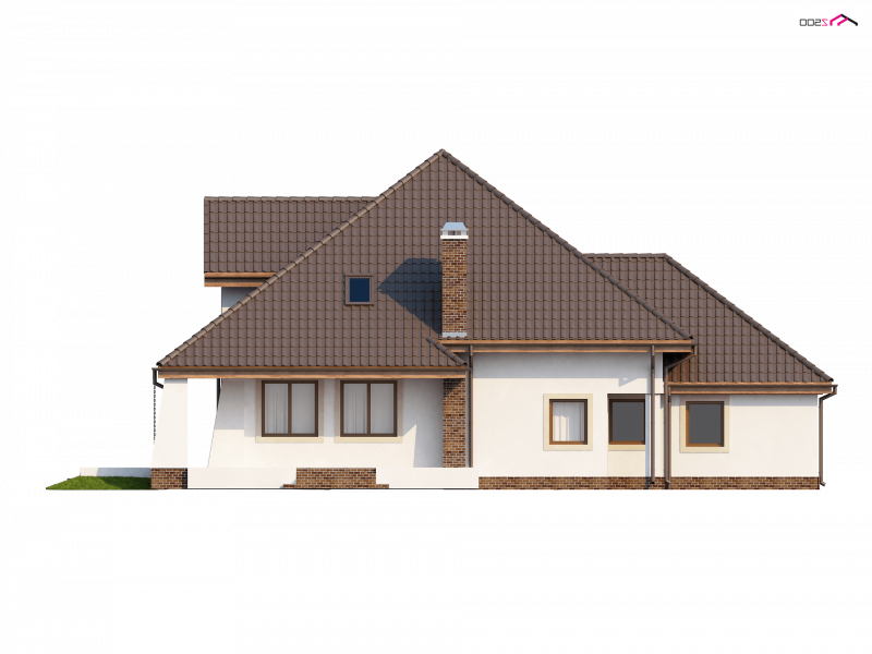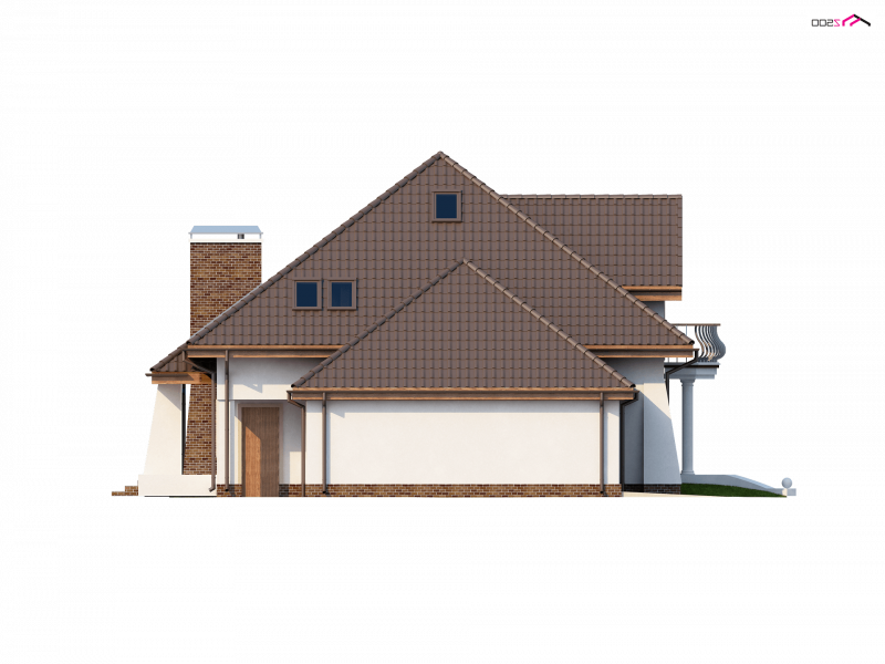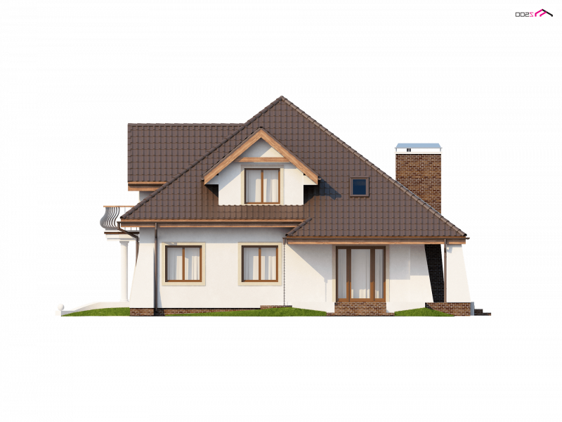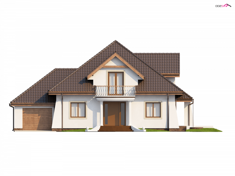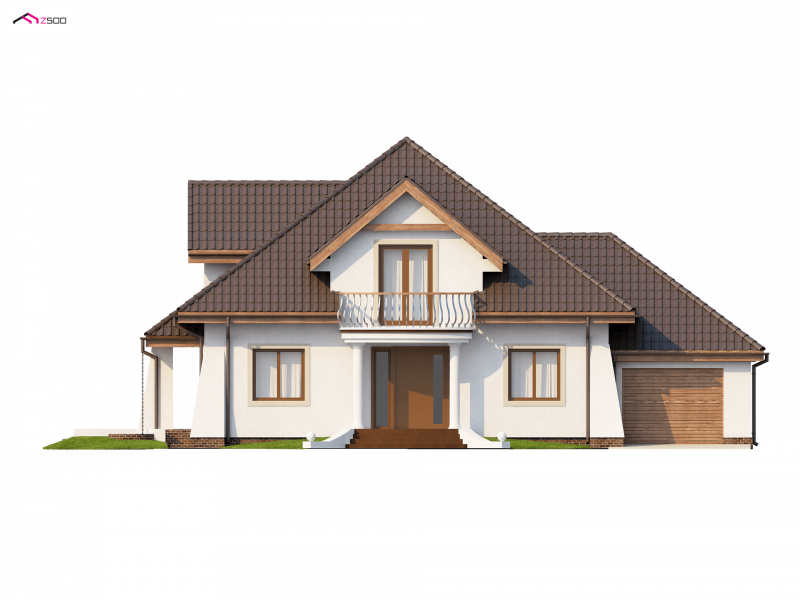 Z109 to projekt funkcjonalnego domu z poddaszem użytkowym. Charakter domu podkreślają zgrabne przypory oraz półkolisty balkonik od frontu.