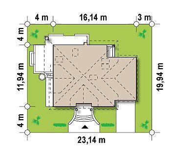 - Min. wymiary działki 19.94x23.14 m