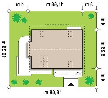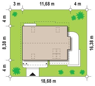 - Min. wymiary działki 16.38x18.68 m