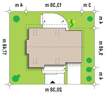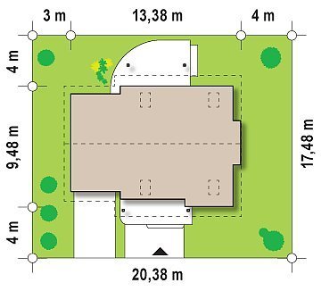 - Min. wymiary działki 17.48x20.38 m