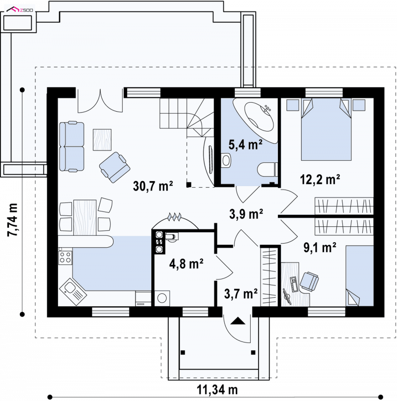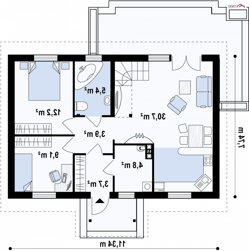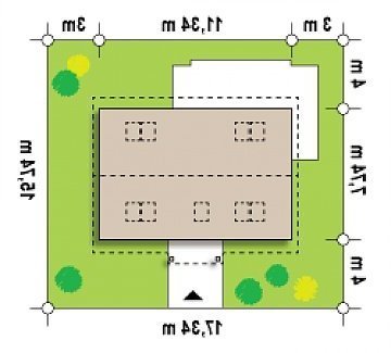 - Min. wymiary działki 15.74x17.34 m