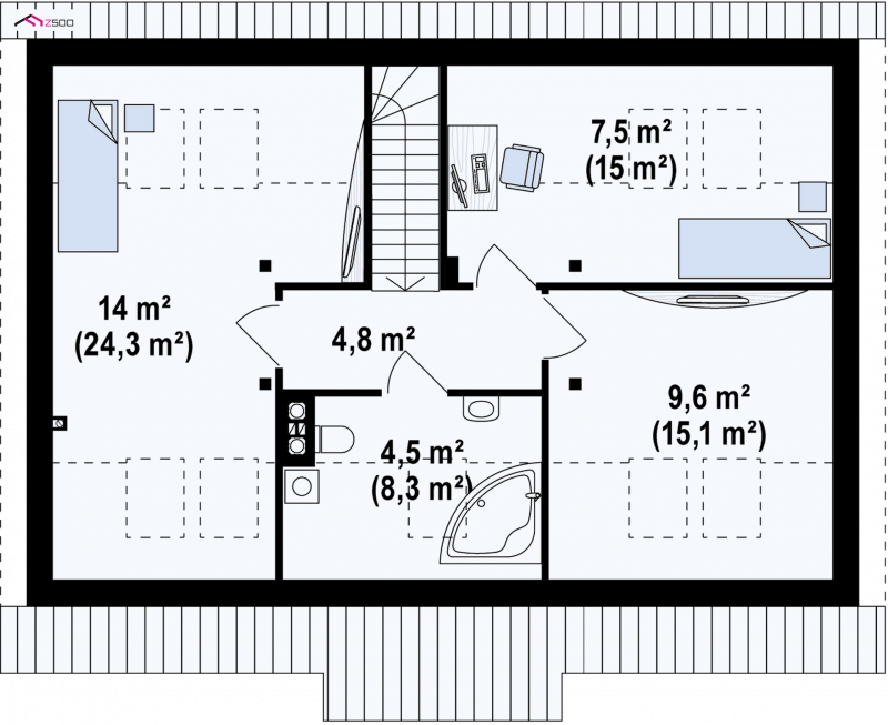 Wersja murowana z poddaszem użytkowym.