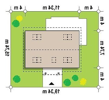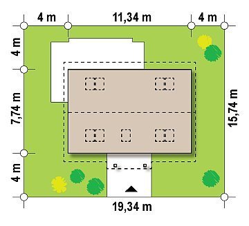 - Min. wymiary działki 15.74x19.34 m