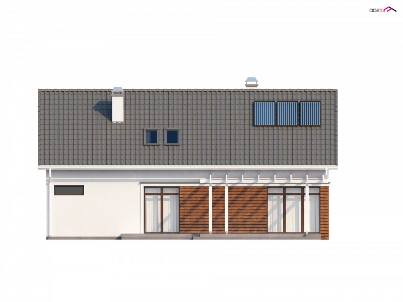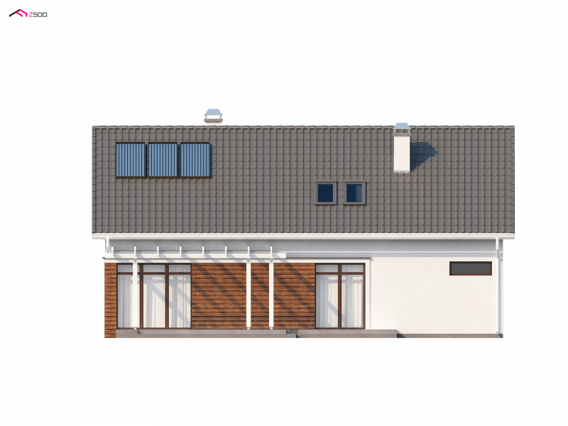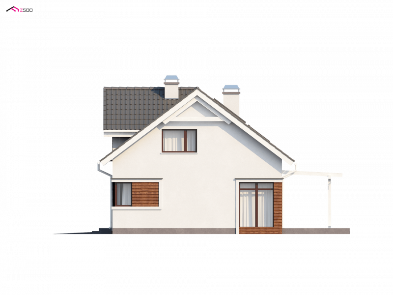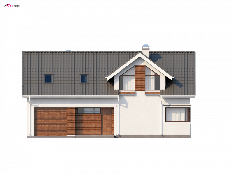 Z122 to wyjątkowy projekt. Nowoczesną bryłę podkreśla oryginalna lukarna. Starannie dobrane dodatki oraz drewniane elementy elewacji dodają mu panoramicznego wyglądu. Jego przyjemna, atrakcyjna forma sprawia, że dom wciąż zyskuje nowych wielbicieli.