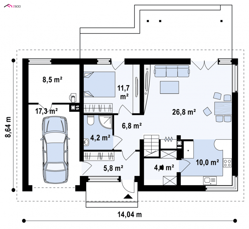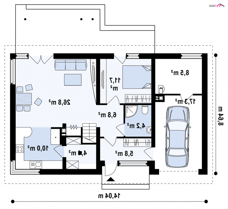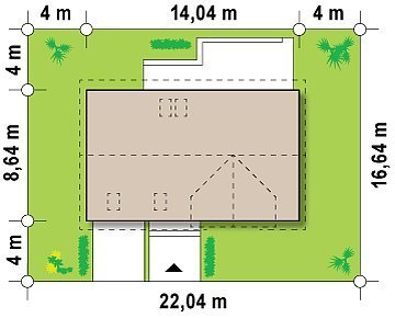 - Min. wymiary działki 16.64x22.04 m