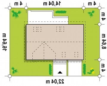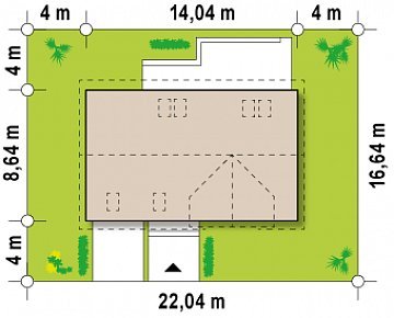 - Min. wymiary działki 16.64x22.04 m