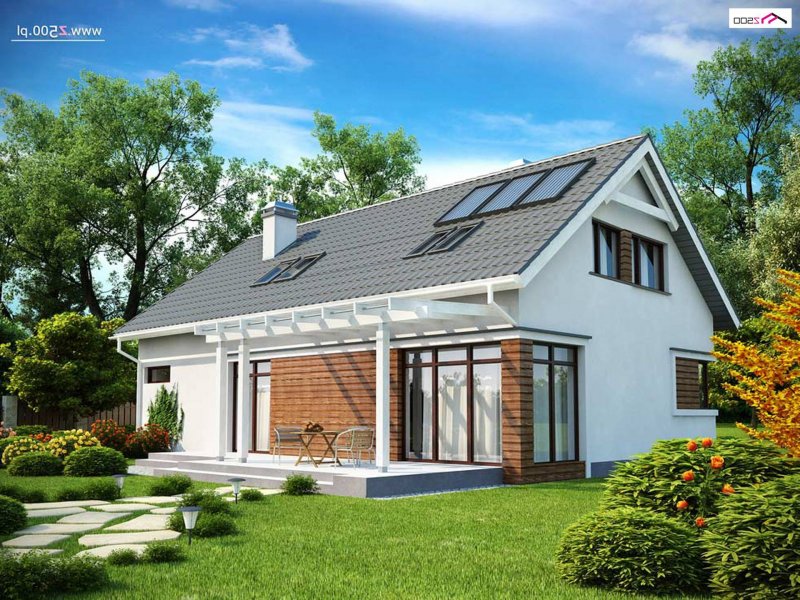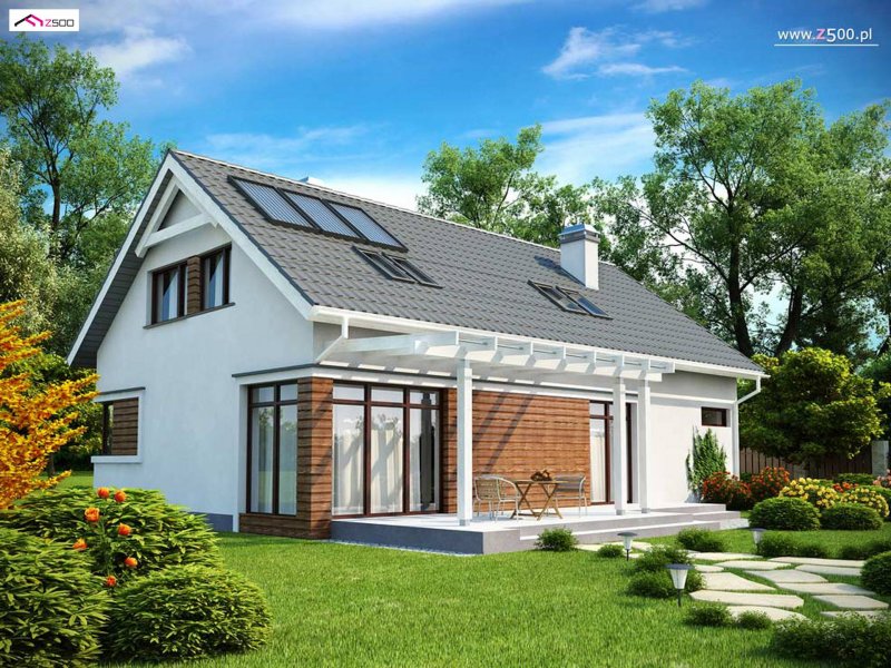 Z122 v2 to wyjątkowy projekt. Nowoczesną bryłę podkreśla oryginalna lukarna. Starannie dobrane dodatki oraz drewniane elementy elewacji dodają mu panoramicznego wyglądu. Jego przyjemna, atrakcyjna forma sprawia, że dom wciąż zyskuje nowych wielbicieli.