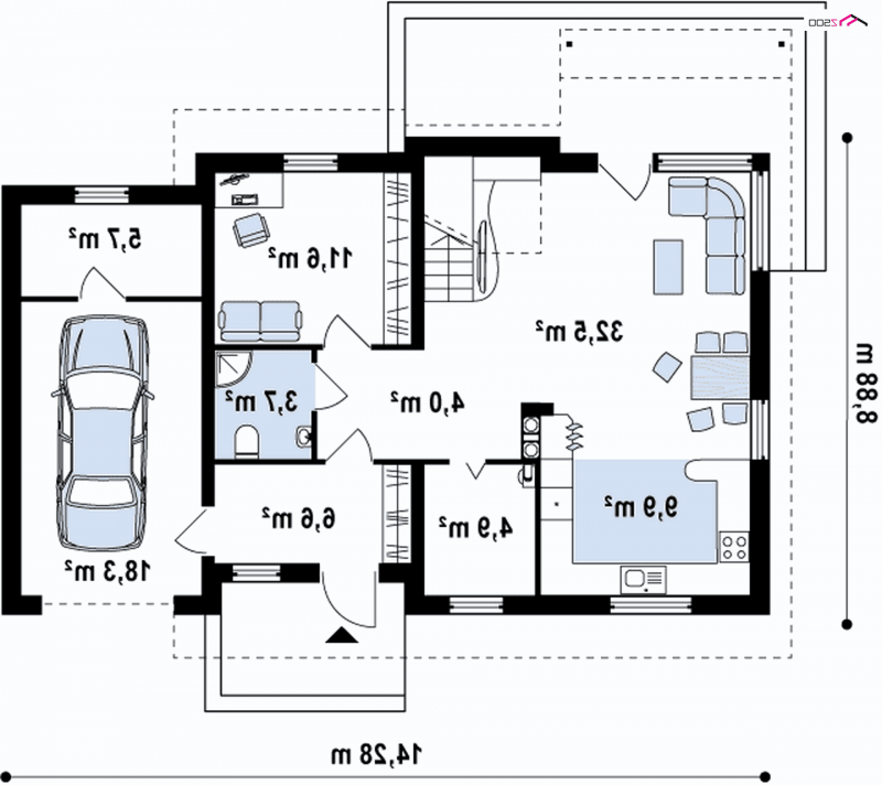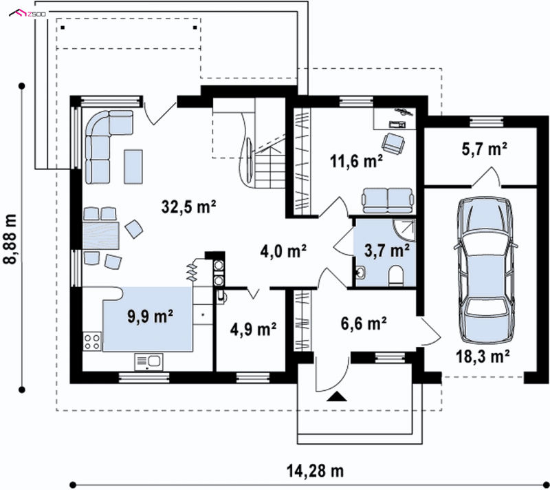 Z 127 to propozycja typowego domu o zgrabnej bryle i ciekawych detalach. Prosta konstrukcja budynku i dwuspadowy dach pozwolą na łatwą i szybką budowę. Kształtna, zwarta bryła pozwoli na zmniejszenie strat energii na ogrzewanie domu. Dzięki temu nie tylko oszczędzamy pieniądze, ale również pomagamy chronić środowisko!