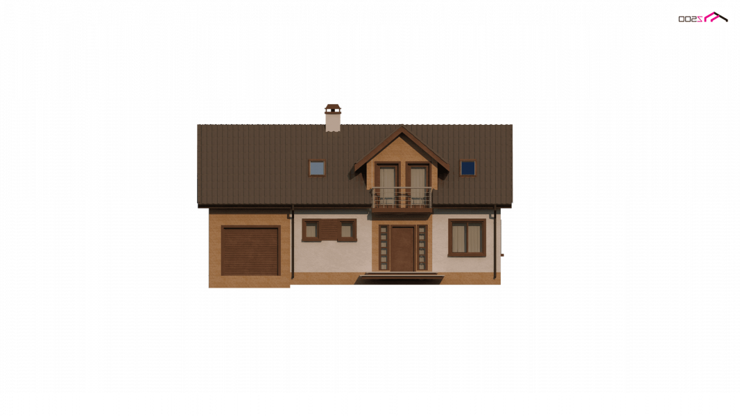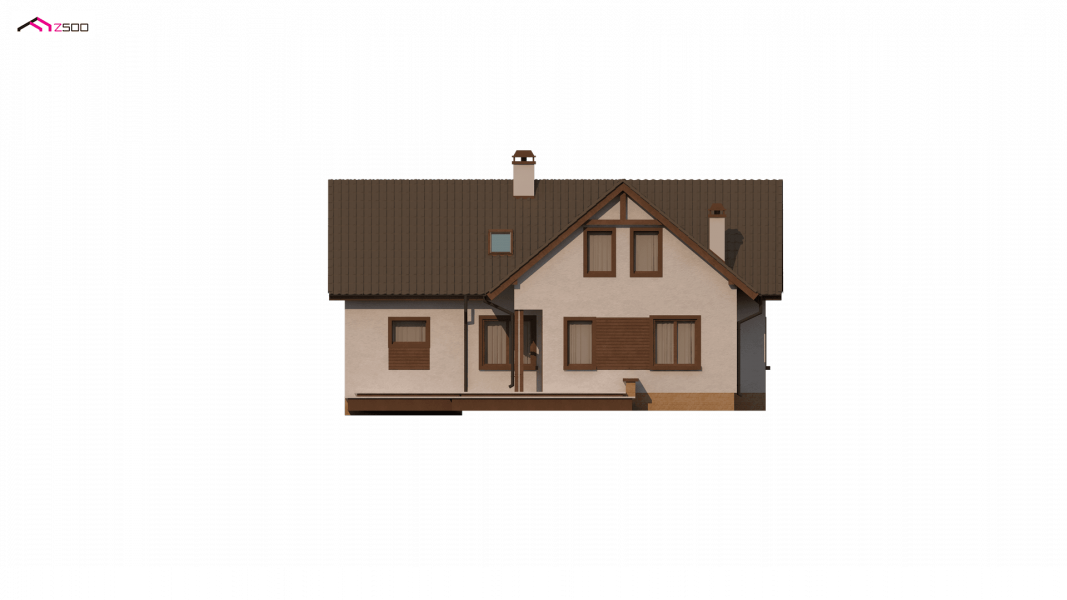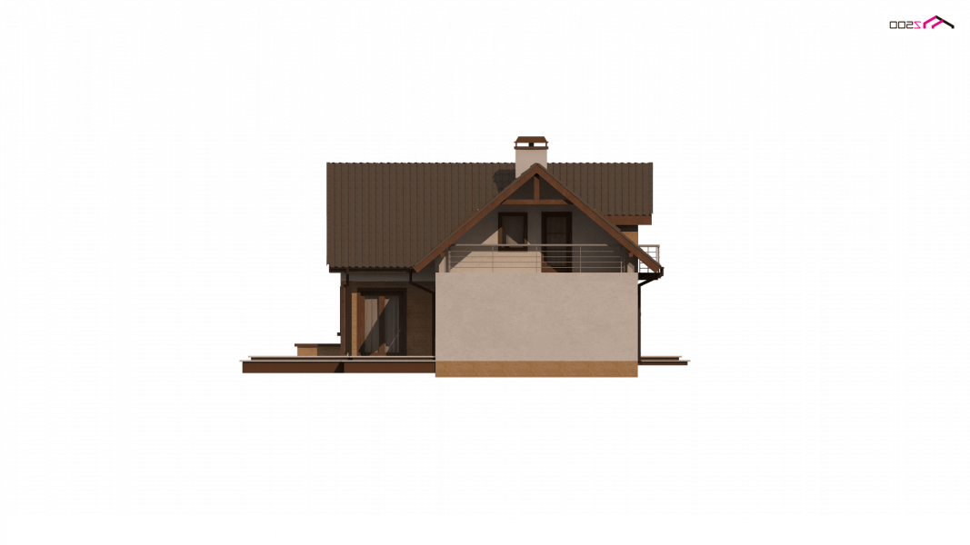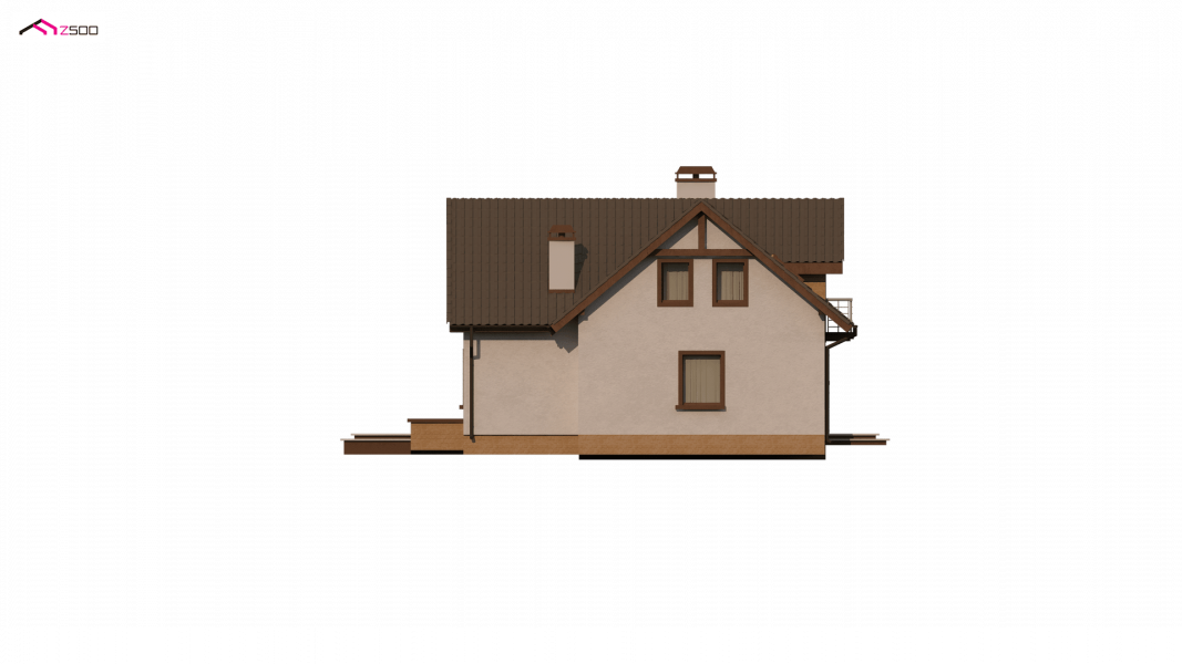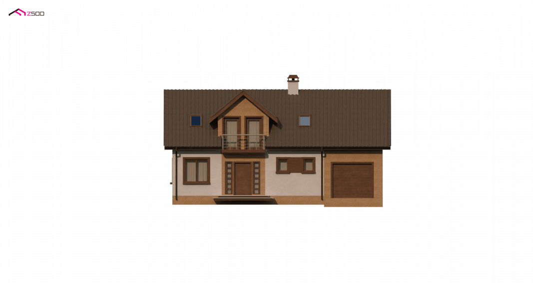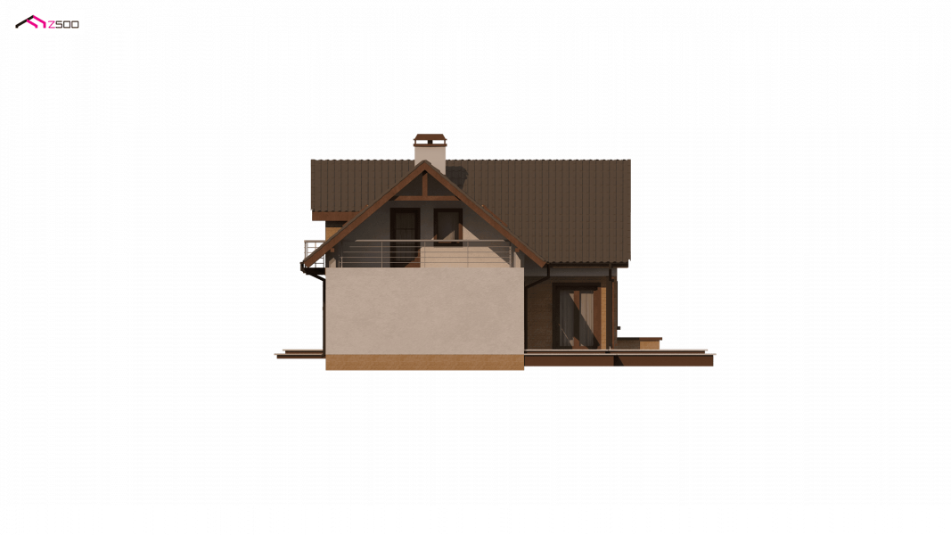 Wersja podstawowa domku Z13 z garażem po prawej stronie. Nad garażem przewidziano miejsce na zadaszony taras, można wykorzystać tą przestrzeń również jako dodatkowe pomieszczenie, powiększając powierzchnię poddasza.