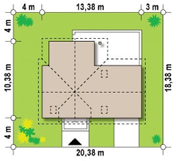 - Min. wymiary działki 18.38x20.38 m