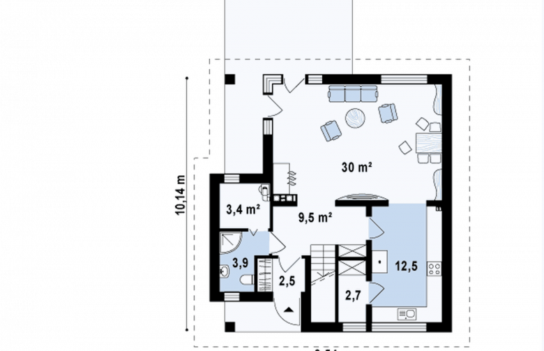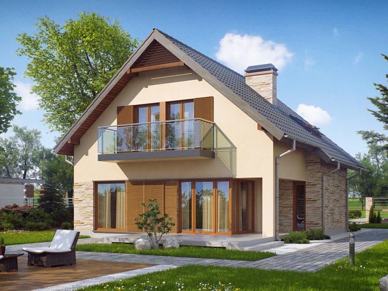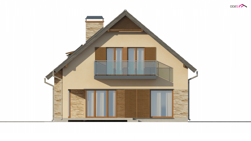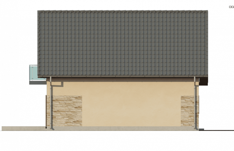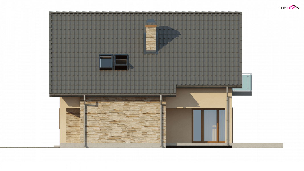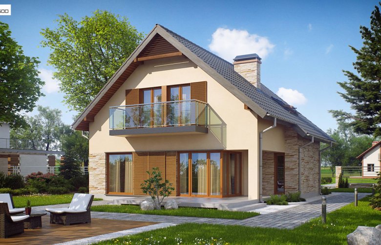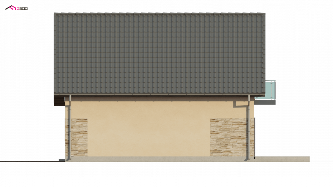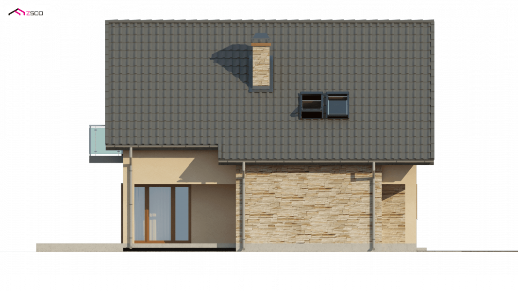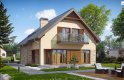 Z134 to zgrabny, kompaktowy dom z poddaszem użytkowym. Niewielka szerokość elewacji frontowej pozwoli ulokować budynek także na wąskiej 15,54m działce. Prostą bryłę budynku urozmaica podcień w strefie wejściowej oraz od strony ogrodu.