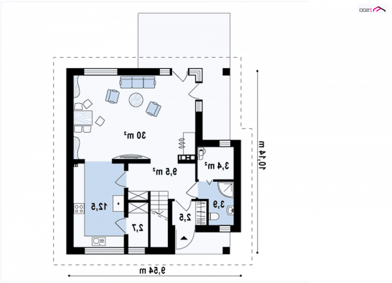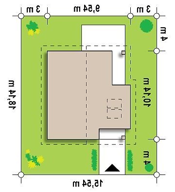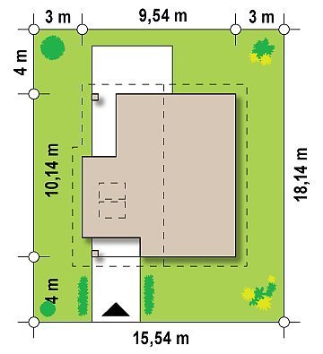 - Min. wymiary działki 18.14x16.54 m