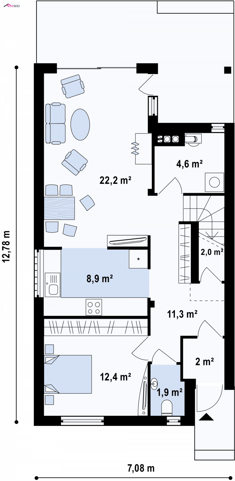 - Wysokość budynku 8.22 m