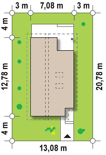 - Min. wymiary działki 20.78x13.08 m