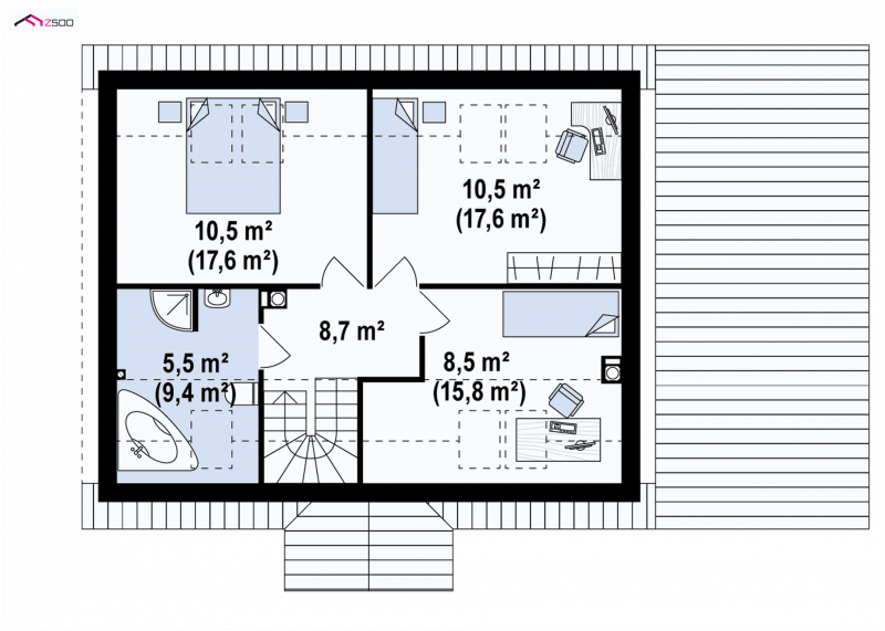 - Powierzchnia dachu 169.08 m²