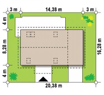 - Min. wymiary działki 16.36x20.46 m