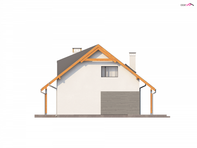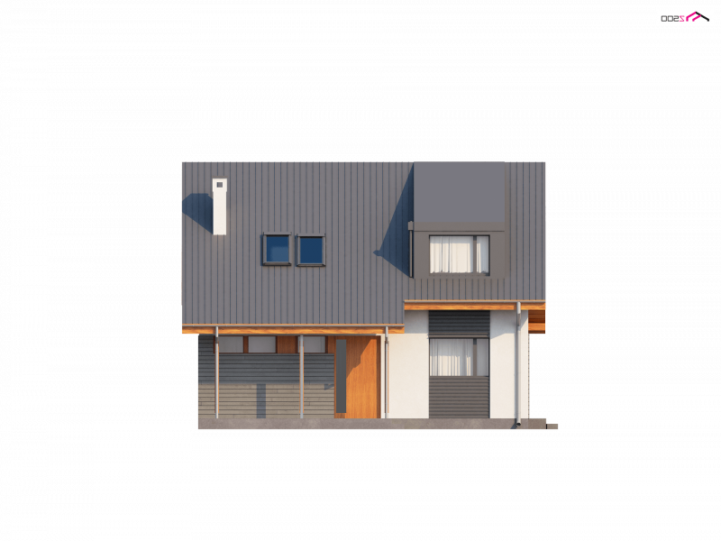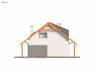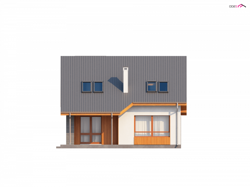 Zastosowane technologie umożliwiają ekonomiczną i tanią eksploatację. Prosta bryła, elegancko wykończona elewacja i ciekawa kolorystyka są niewątpliwie zaletami tego projektu. Nietypowa lukarna oraz oryginalne dodatki nadają mu interesującego wyglądu. Wnętrze domu jest subtelnie podzielone na trzy części. Główną z nich jest wygodny, przestronny salon. Duże powierzchnie przeszkleń, naturalnie doświetlają pomieszczenie. Doskonale wykorzystana przestrzeń zapewnia prawdziwy komfort wypoczynku. W jadalni z łatwością mieści się duży, rodzinny stół. Poprzez szerokie wyjście tarasowe spoglądać można na pięknie urządzony ogród.
