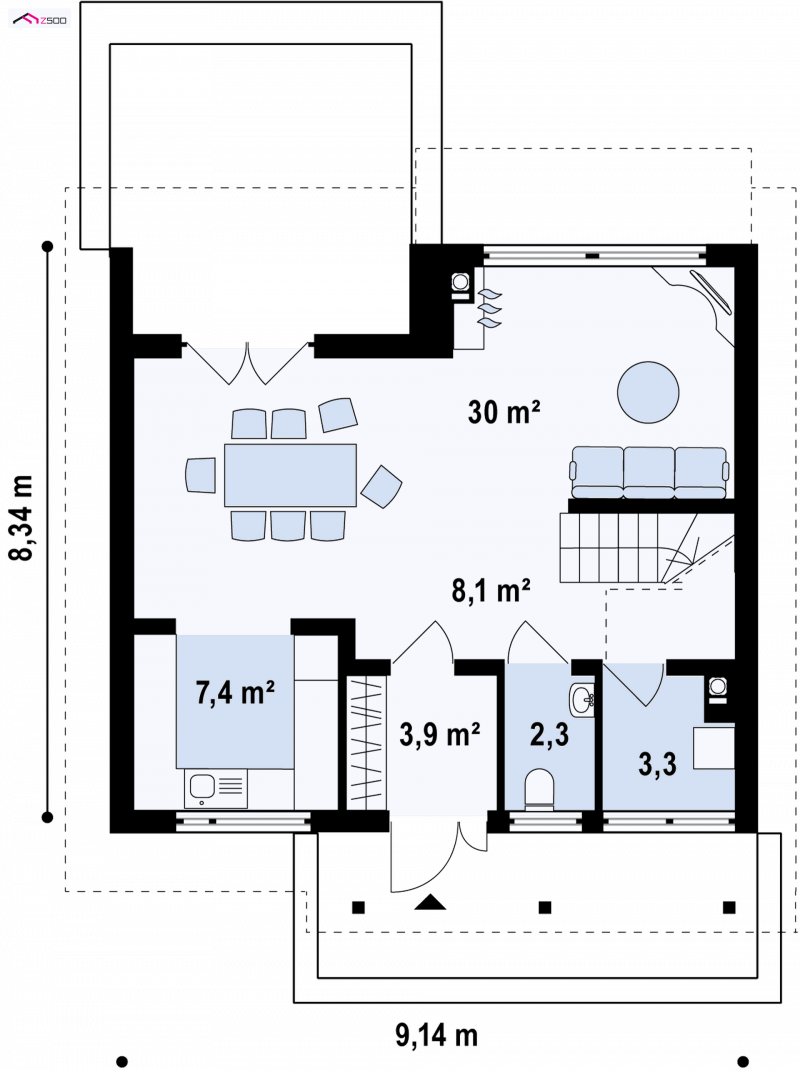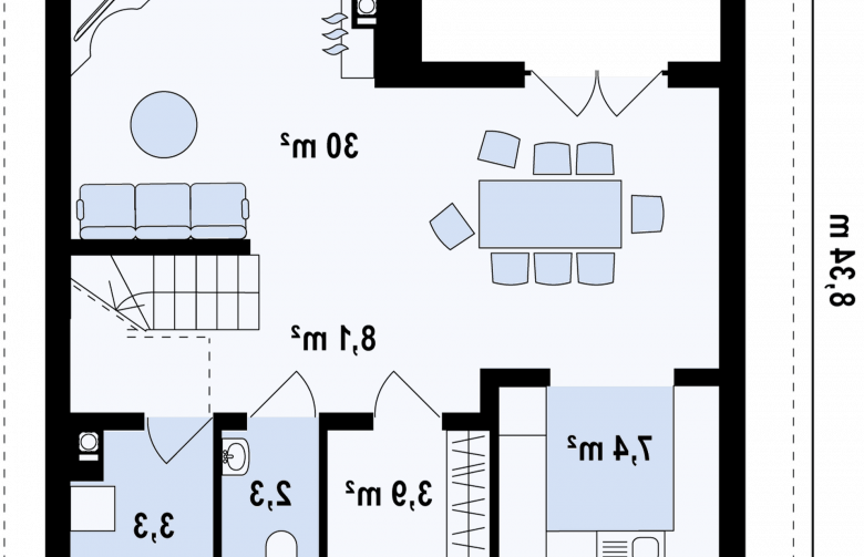 Projekt Z146 to propozycja małego kompaktowego domu dla czteroosobowej rodziny.
