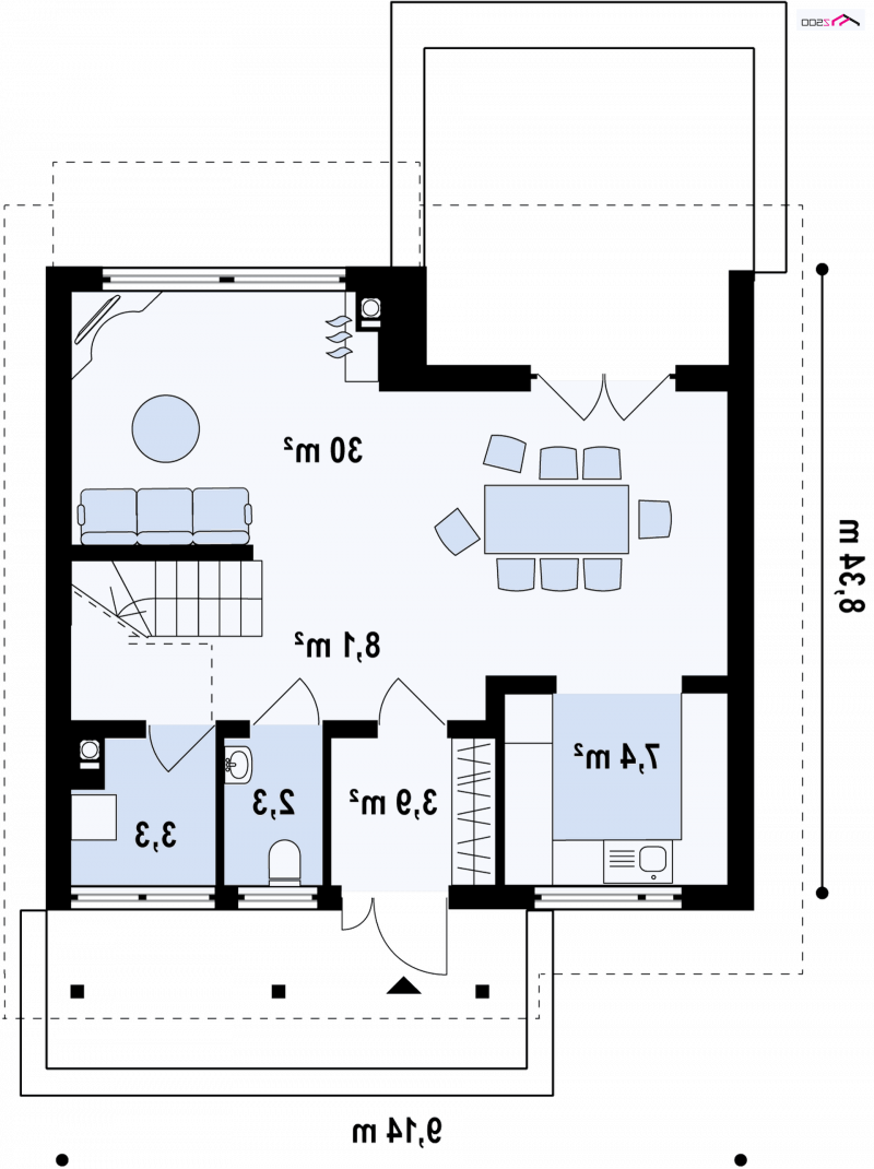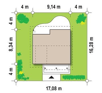 - Min. wymiary działki 16.34x15.14 m