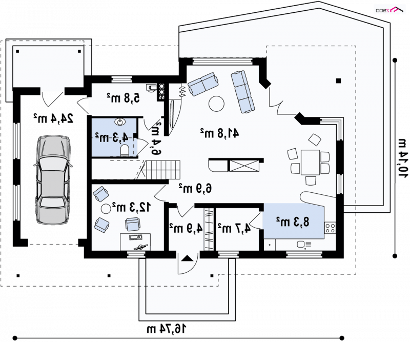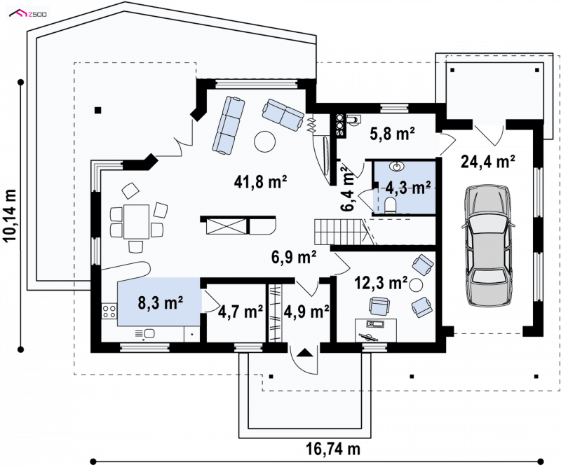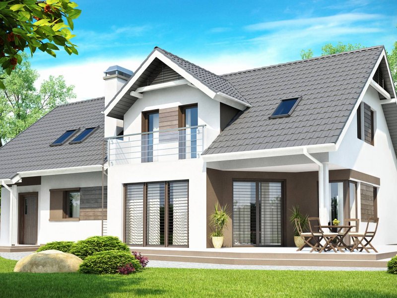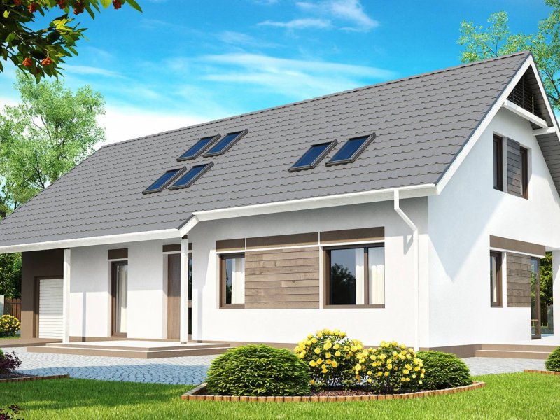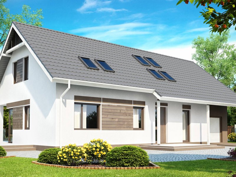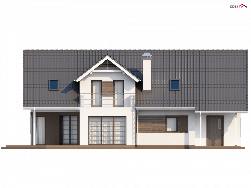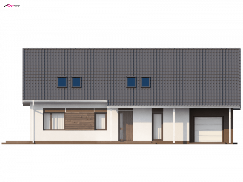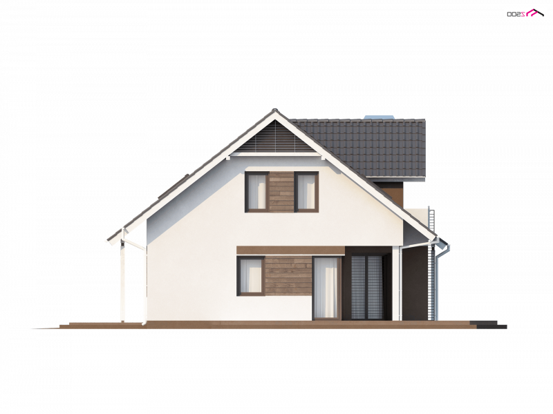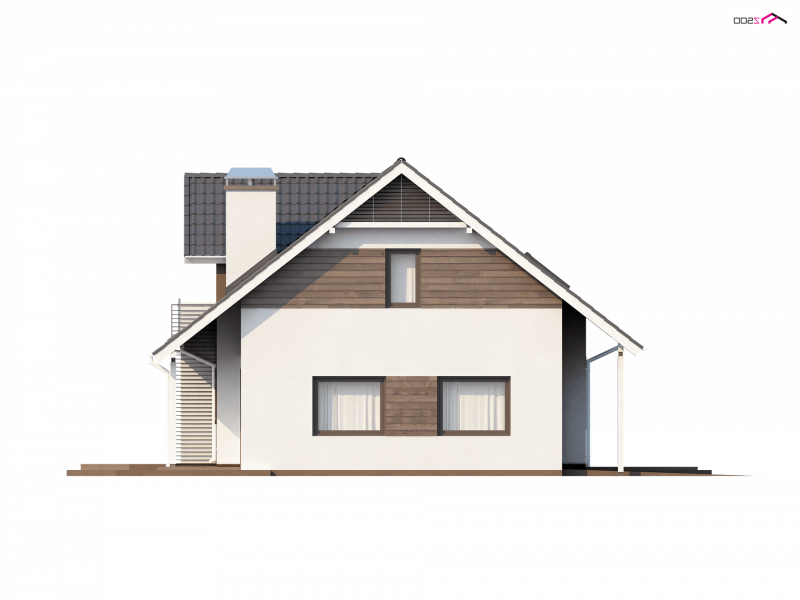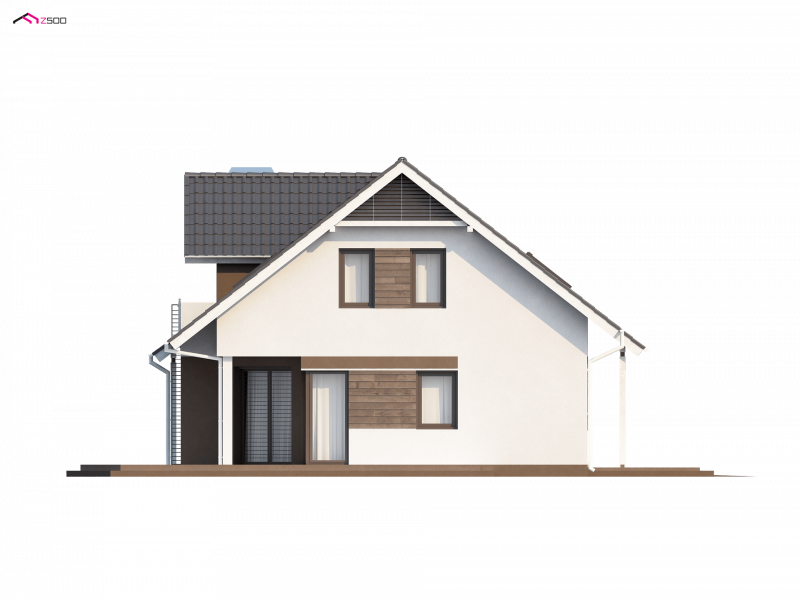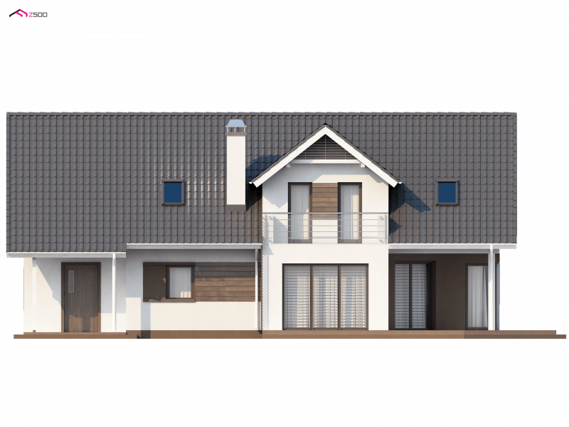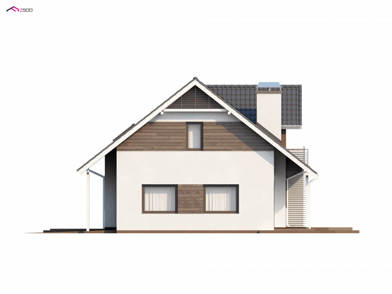 Projekt Z160 to prosty w budowie dom z poddaszem, z 4 pokojami mieszkalnymi i garażem. Dom wyróżnia wykusz przedłużony w lukarnę z balkonikiem od strony ogrodu. Zgrabna konstrukcja bryły pozwala na oszczędności już na etapie budowy.