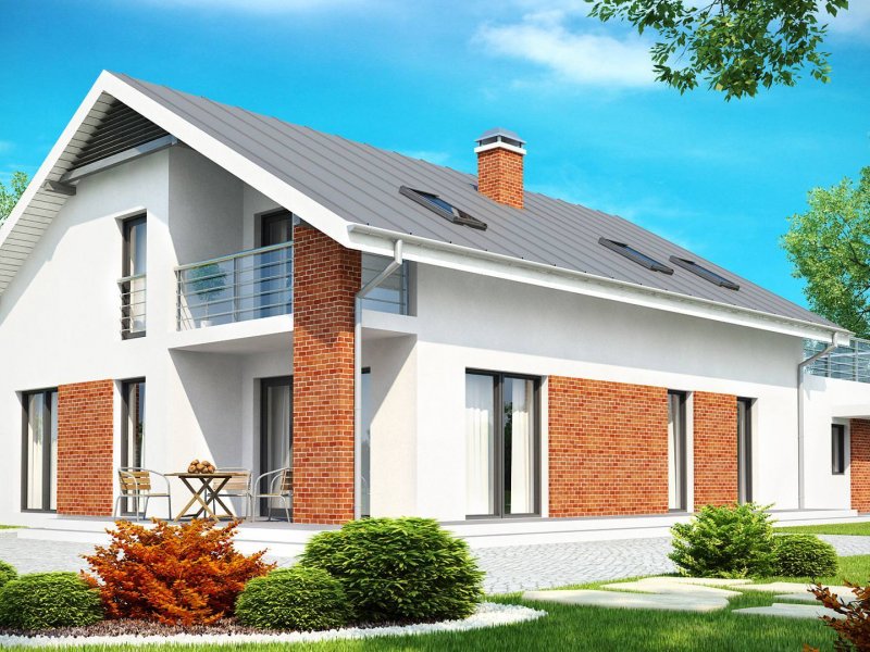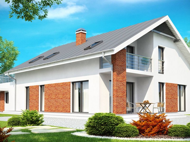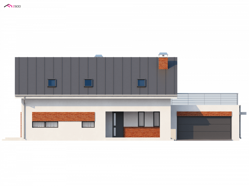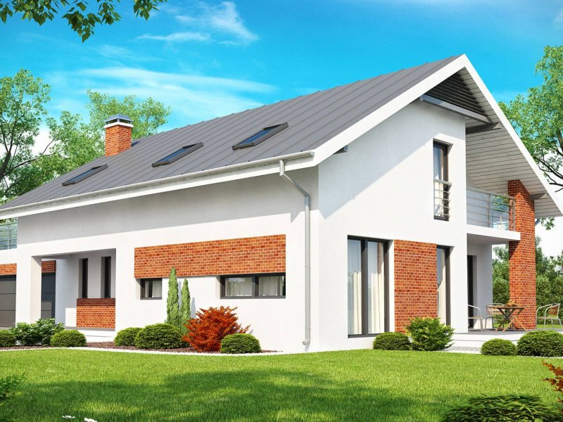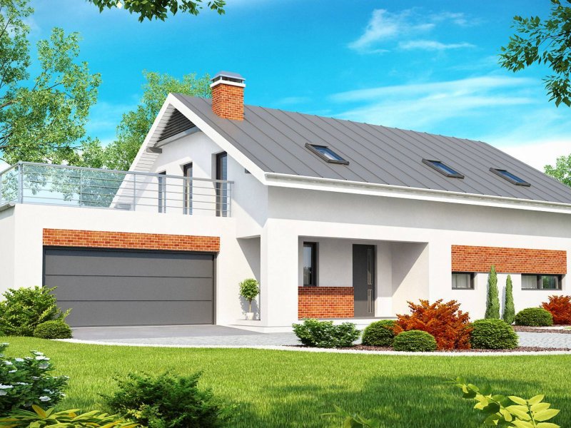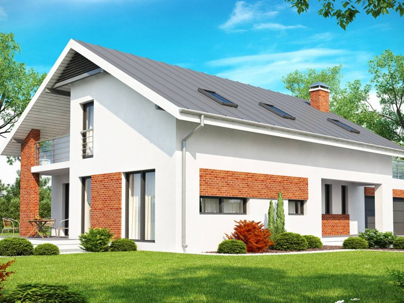 Projekt Z161 to wygodny dom piętrowy z garażem dwustanowiskowym. Główna bryła z dachem dwuspadowym, o prostych założeniach konstrukcyjnych potania jego realizację. Jasne barwy ścian doskonale współgrają z popielatą dachówką i wstawkami z ceglanych płytek.